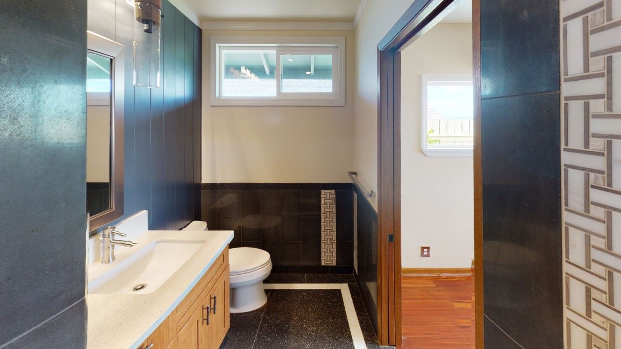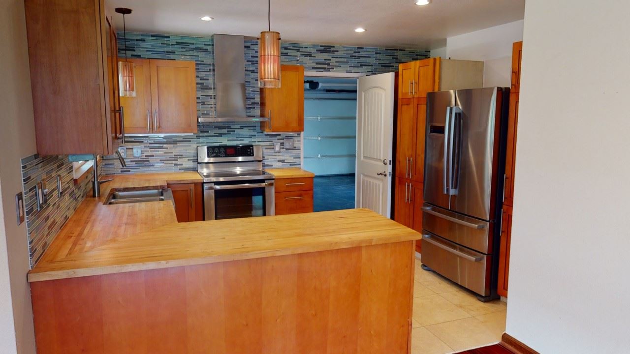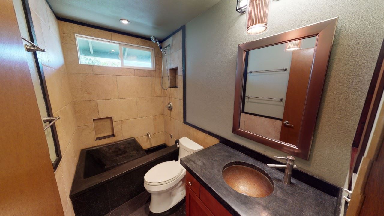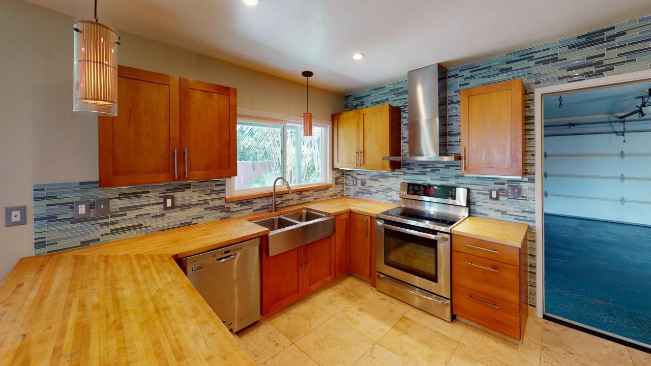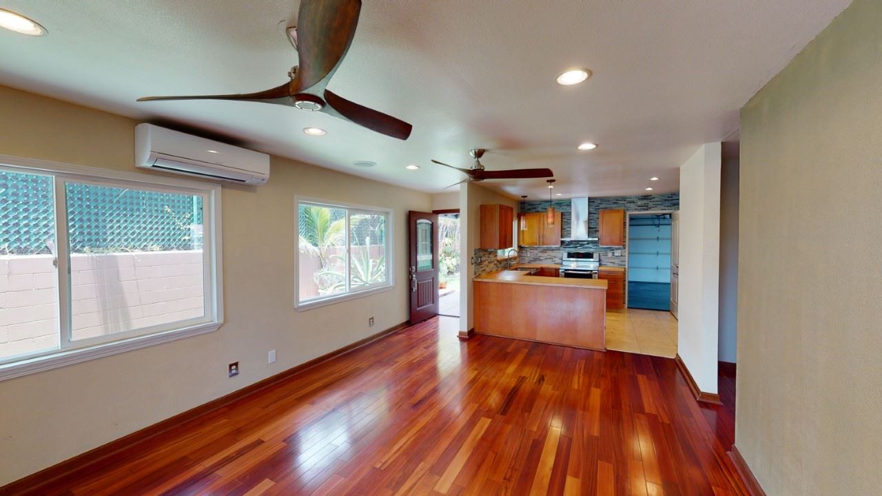 Enjoy the privacy and comfort of this lushly landscaped and upgraded home. The kitchen is well equipped with abundant wood cabinets, stainless steel appliances (Bosch refrigerator, LG glass surface range, Maytag dishwasher, Arietta range hood), 18" x 18" cream colored travertine floors, aqua/green glass mosaic backsplash/accent wall, and handmade maple countertops. The main bathroom features a handcrafted oversized black cement soaking tub, pewter sink with concrete countertop, 2' x 2' lava floors, and travertine wainscoting with a lava border. The master bathroom floors are lava tile and glass, the shower is dark grey basalt and basketweave marble, the sink is porcelain with a white quartz countertop, and the walls are accented with basalt and tongue and groove beadboard. Other upgrades include Mitsubishi split air conditioning in each bedroom and the living area, engineered tigerwood flooring in the living areas and bedrooms, Minka Aire "Aviation" ceiling fans in each bedroom and living areas, recessed and pendant lighting added throughout the home, built in speakers, UV/IR blocking double pane vinyl windows, detailed fiberglass exterior doors, and security screen doors. There is an attached 2 car garage with an epoxied floor with glow in the dark chips, the laundry area, and additional storage areas. The fenced yard includes many varieties of plants, a large lava rock wall planter, and a quartz rock covered patio. There are amazing ocean and Haleakala views from the back facing rooms and back yard of the property. See the Matterport 3D tour for a virtual walk through.