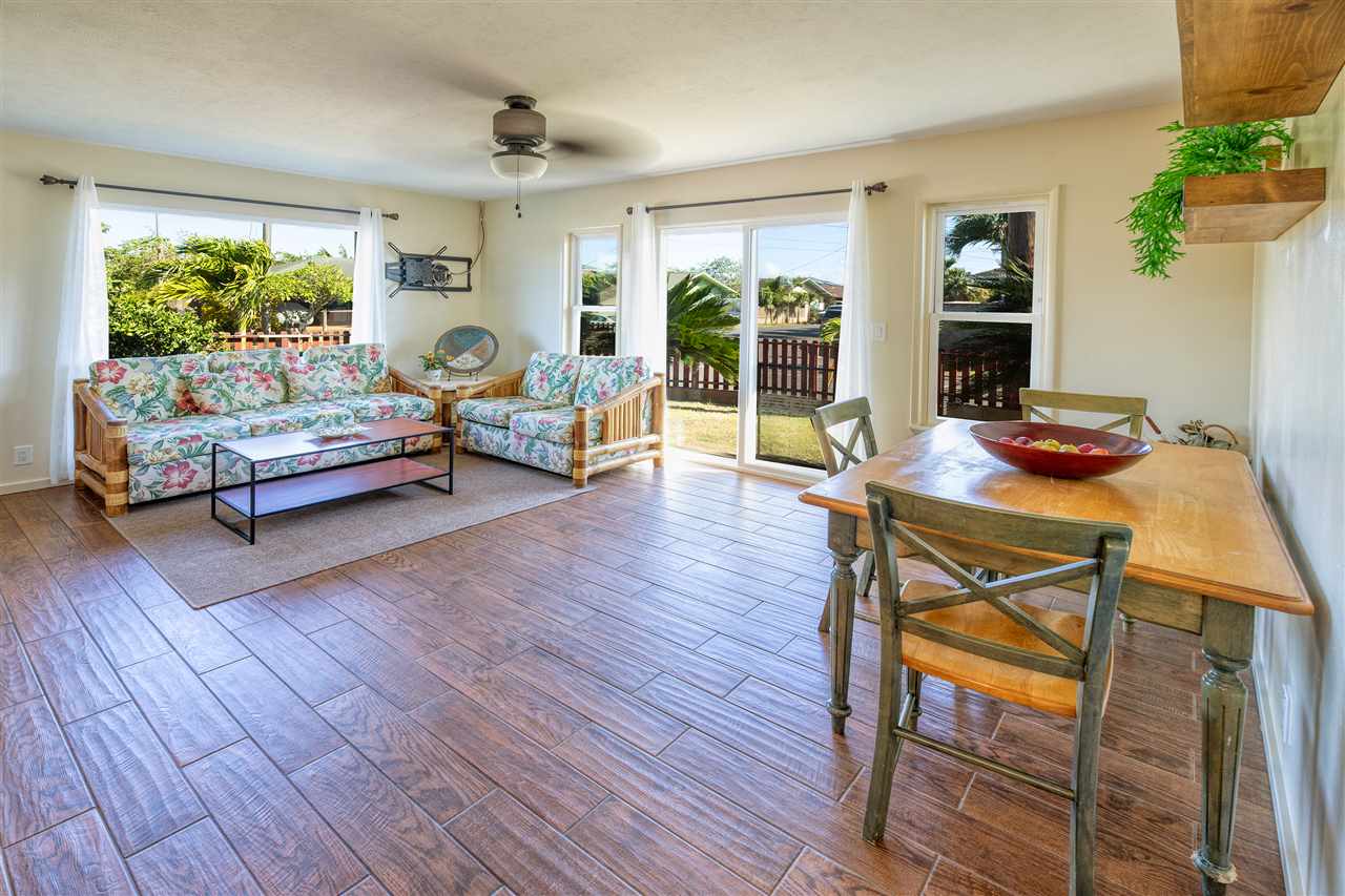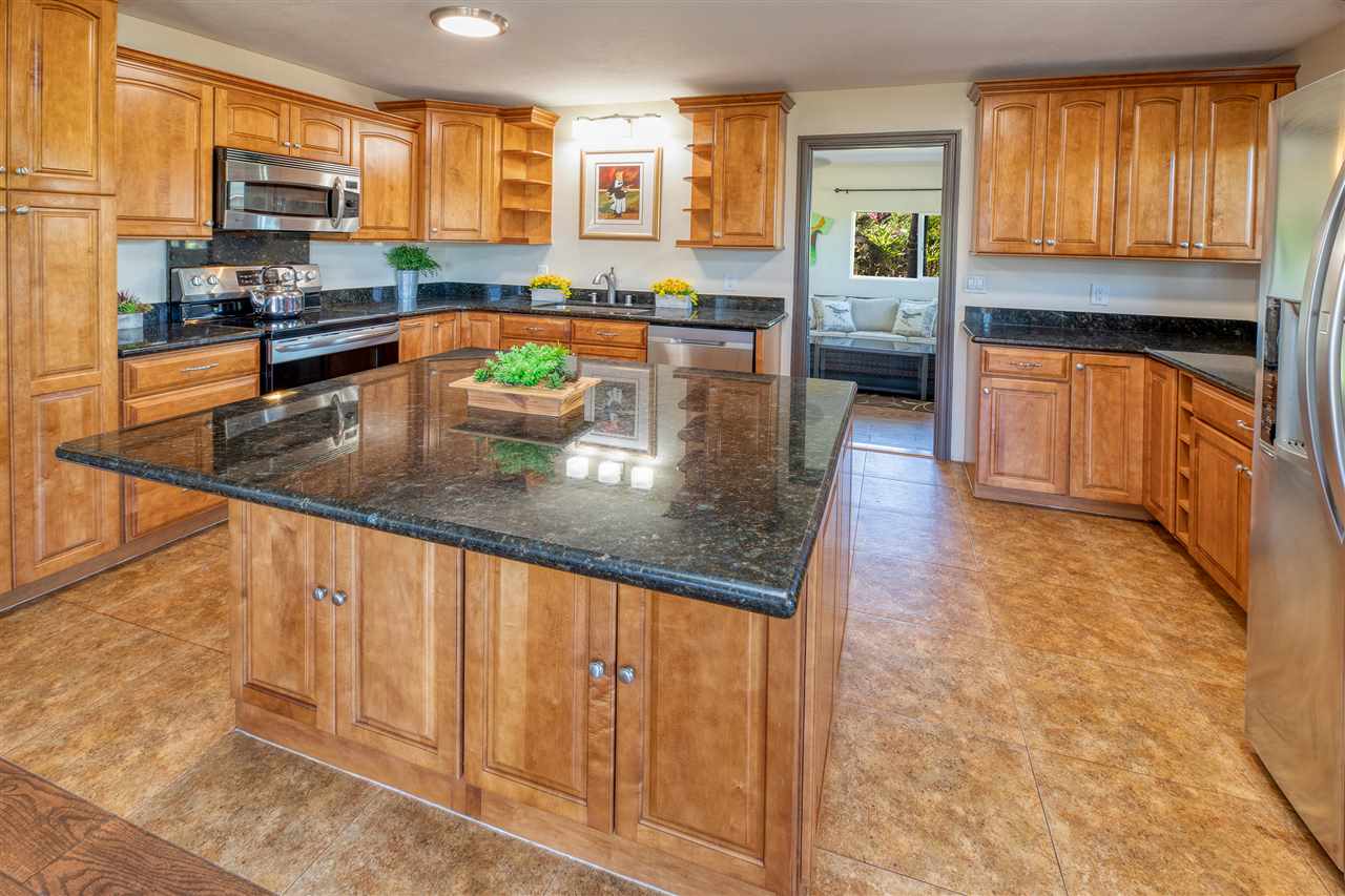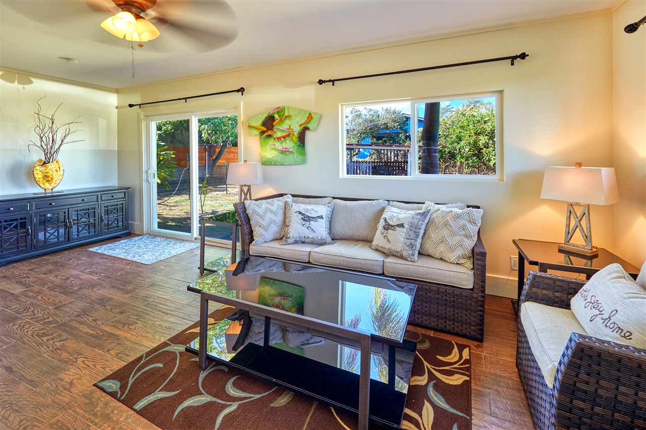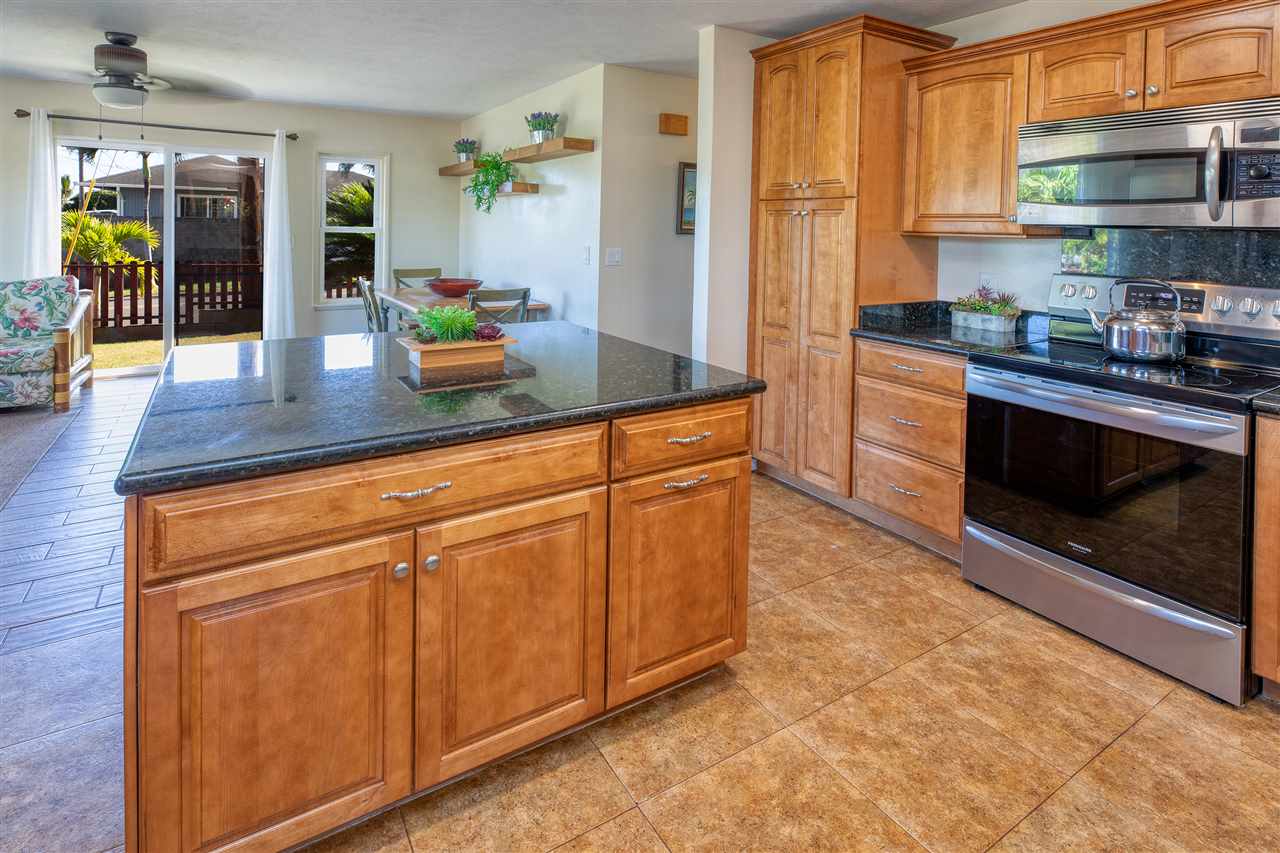 BEAUTIFUL PRIVACY FENCE JUST INSTALLED! This tastefully remodeled 4 bedroom, 2.5 bath single level home offers a flexible floor plan for extended family includes a 24-panel owned net metered photovoltaic system and tankless solar hot water heater providing extremely low electric at $20/mo. One of the most stunning features is this gorgeous all new kitchen with real wood cabinets, granite counter tops with an island, new stainless appliances and beautiful ceramic tile flooring with faux wood appearance throughout. All of the interior has been painted, the fixtures replaced including ceiling fans, the bathrooms remodeled with new sink, counter and toilets, new roof replaced in 2015, all the siding and trim to the exterior of the house replaced, including all the windows and slider doors are dual pane vinyl. This spacious 6,634 sqft all usable corner lot includes a redwood fence along the perimeter, a detached storage shed, an amazing variety of fruit trees and ample room for future expansion or just enjoy the garden as this family has for generations. Skill Village is in an ideal location just minutes from the best Maui beaches with water sports activities year round, turtle & whale watching and gorgeous sunsets. As well as the famous and historic Paia town with great restaurants and an eclectic blend of unique shops and live music.