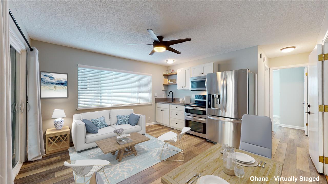 Beautiful move-in ready remodeled home in convenient South Kihei location just a few minutes to beaches, shops, and restaurants. 3/2 main home and 1/1 ohana/in-law unit. Large patio areas both upstairs and downstairs to enjoy indoor/outdoor living. Updates include luxury vinyl plank flooring, stainless steel appliances, and quartz counters in kitchen. 480 sf 2-car garage and lots of room in driveway for additional parking. Central AC throughout main home. Mature avocado, mango, and star gooseberry trees. Listing agent is related to Seller and is a licensed real estate broker in the State of Hawaii.