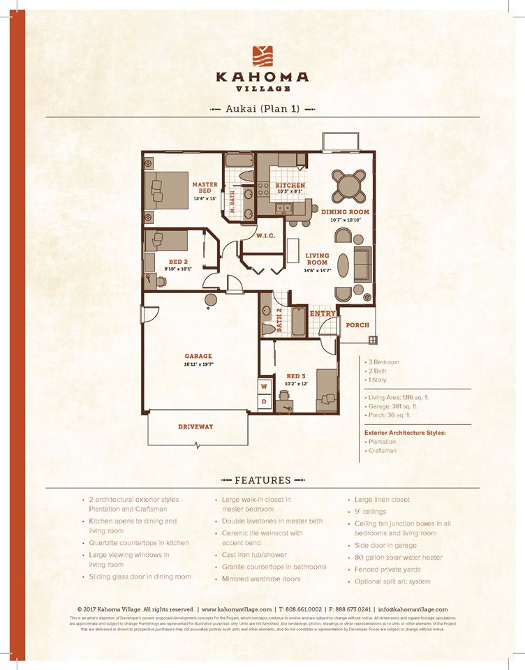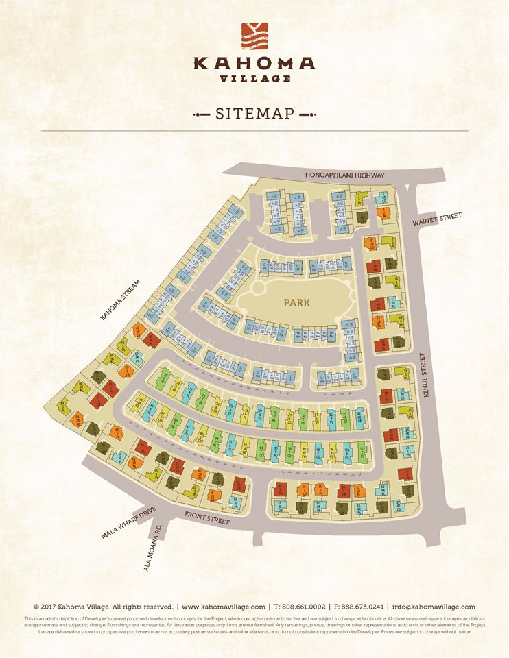 Come Home to Kahoma Village, a new West Maui community right off Historic Front Street. Within the neighborhood youll find 3 different offerings to suit almost anyone; The Villas, The Courtyards and The Carriage Ways. Residents of the community will enjoy 3 parks and high-speed internet service. The location puts you right within walking distance to restaurants, shopping, Baby Beach and of course Front Street. The Courtyards are free standing homes with 5 different floor plans and 3 different architectural exteriors. Only 69 of these homes will be offered; with 20 of those set aside for workforce housing, there will be only 49 market priced homes for sale with no ownership restrictions. The Courtyard homes feature 2 car garages, fenced yards, spacious floor plans, and front porches. Inside you will find 9 foot ceilings on the 1st floor, Kitchens with GE Appliances and granite countertops, quartzite counters in the bathrooms, solar water heating and side doors in garage. This is a Plan 1-R single story home. Limited Common Element is approx 2,279 SF. Price includes AC option and standard stainless appliances valued at $24,050. Please note that matterport video and photos are of a different lot, video and photos are used just to illustrate Plan 1 Floorplan. New Developer Offering, input for MLS comps.