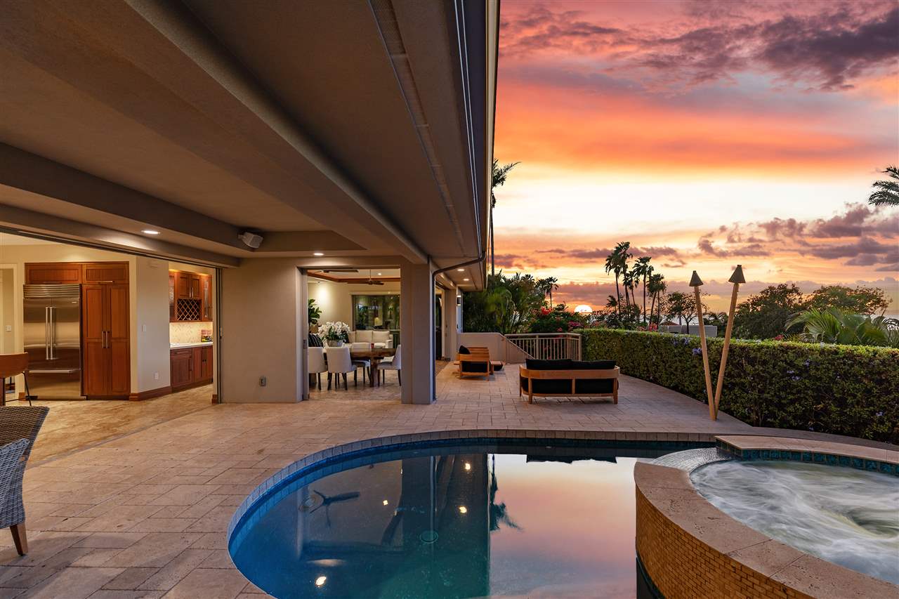 I want to buy this house! Originally designed by world renown Architect John Mattham of the International Design Group. A luxury build in 2012, this home has had a top to bottom remodel in 2019. Starting in the kitchen all new subzero refer, new wolf appliances with a conversion to a 5 burner gas cooktop range. All new upgraded lighting with a conversion to Lutron lights. New custom ceiling fans, new sinks and toilets. The home offers a single level floor plan of approximately 2500 sq.ft. Downstairs an additional 1200 sq.ft. that underwent a conversion to 4th bedroom with media room and the addition of central A/C. Fleetwood doors open to a large lanai, pool and spa with a beautiful ocean, West Maui Mts, sunset view. The home is located in the gated community of Wailea Kialoa and situated on a flag lot providing privacy and security. This is the complete package and virtually a brand new home. Call your realtor today for a showing of this stellar home and you too will want to buy this architectural masterpiece.