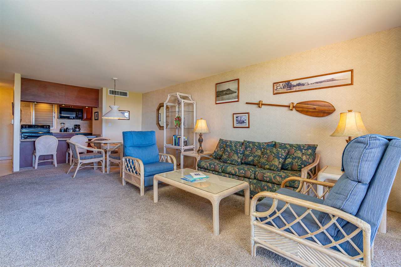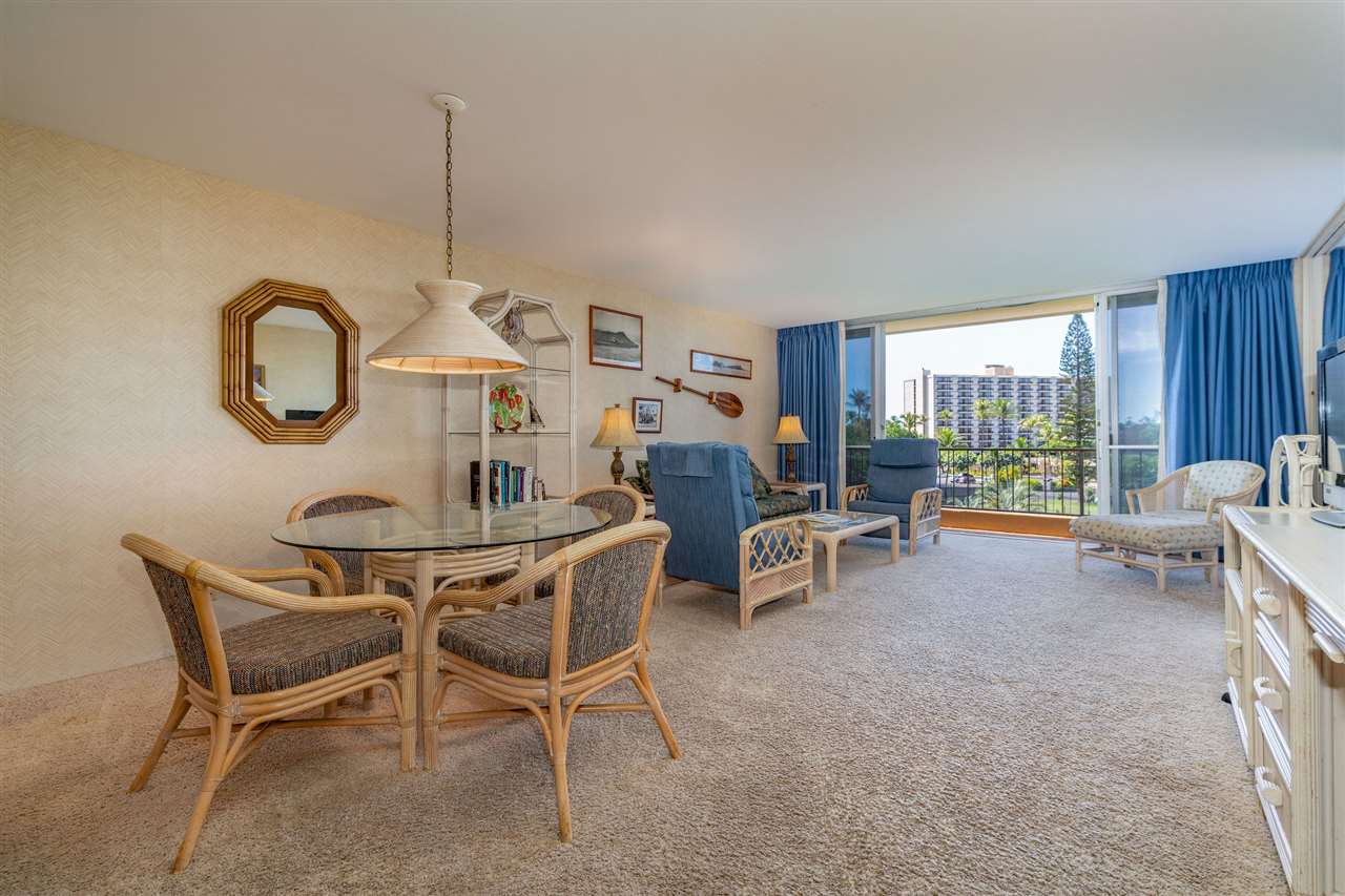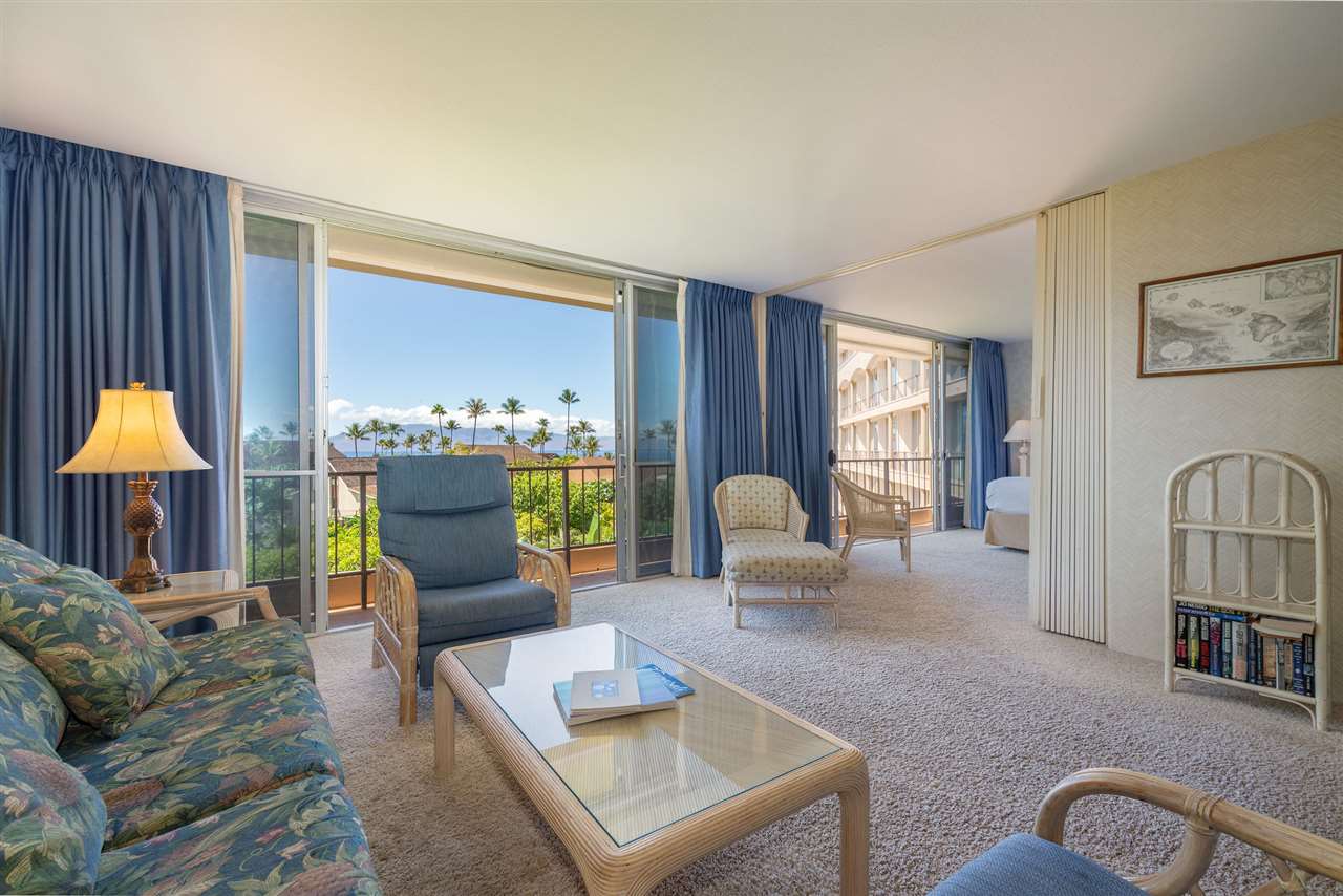 Enjoy winter sunsets from the southwest exposure of Maui Kaanapali Villas unit A-415. This 1 bedroom, 1 bathroom unit is located on the fourth floor of the Aloha Tower. With over 900 sqft of interior space, this condominium provides ample room for guests. Take a tour through the property by visiting my.matterport.com/show/?m=5HrRbbBs9gD&mls=1 The 'flying' whale photograph near the kitchen is excluded from the sale. Maui Kaanapali Villas combines condominium style with hotel amenities, including a poolside caf & bar and a luxurious day spa which offers massages in garden cabanas. The resort is nestled on 11 acres of exotic tropical gardens in the Kaanapali Resort area on one of the finest stretches of Kaanapali Beach. MKV is minutes away from an adjacent tennis ranch, two championship golf courses, world class dining and shopping, and historic Front Street in Lahaina town. A photo-voltaic system was installed. Legal door number is A-406. The monthly maintenance fee includes electric, cable, water, trash, sewer, building maintenance, pools and spa, administration expenses and salaries, the master insurance policy for MKV, and the reserve fund.