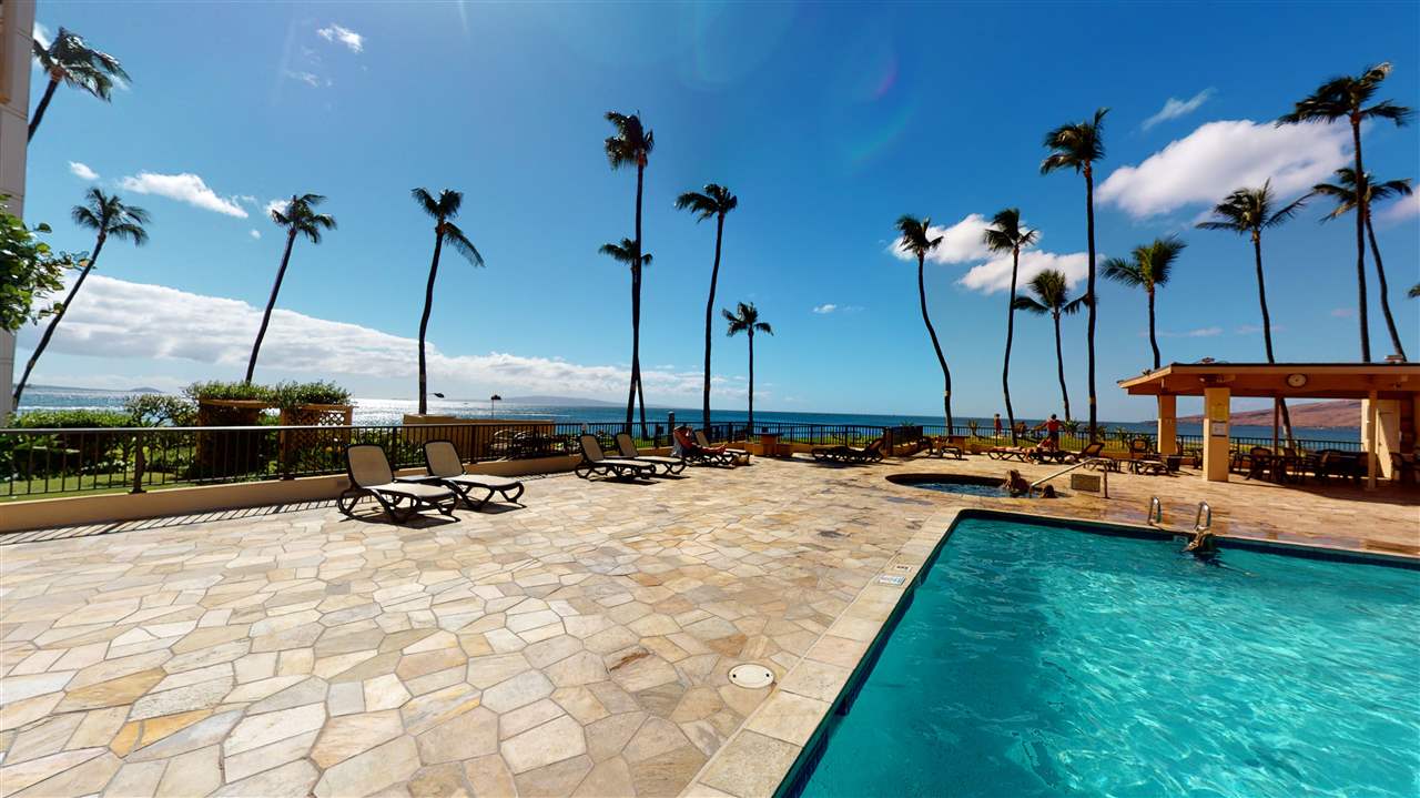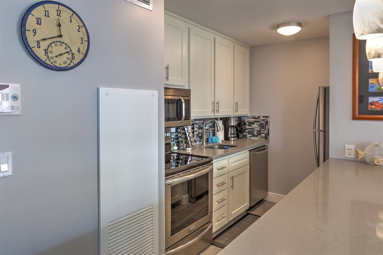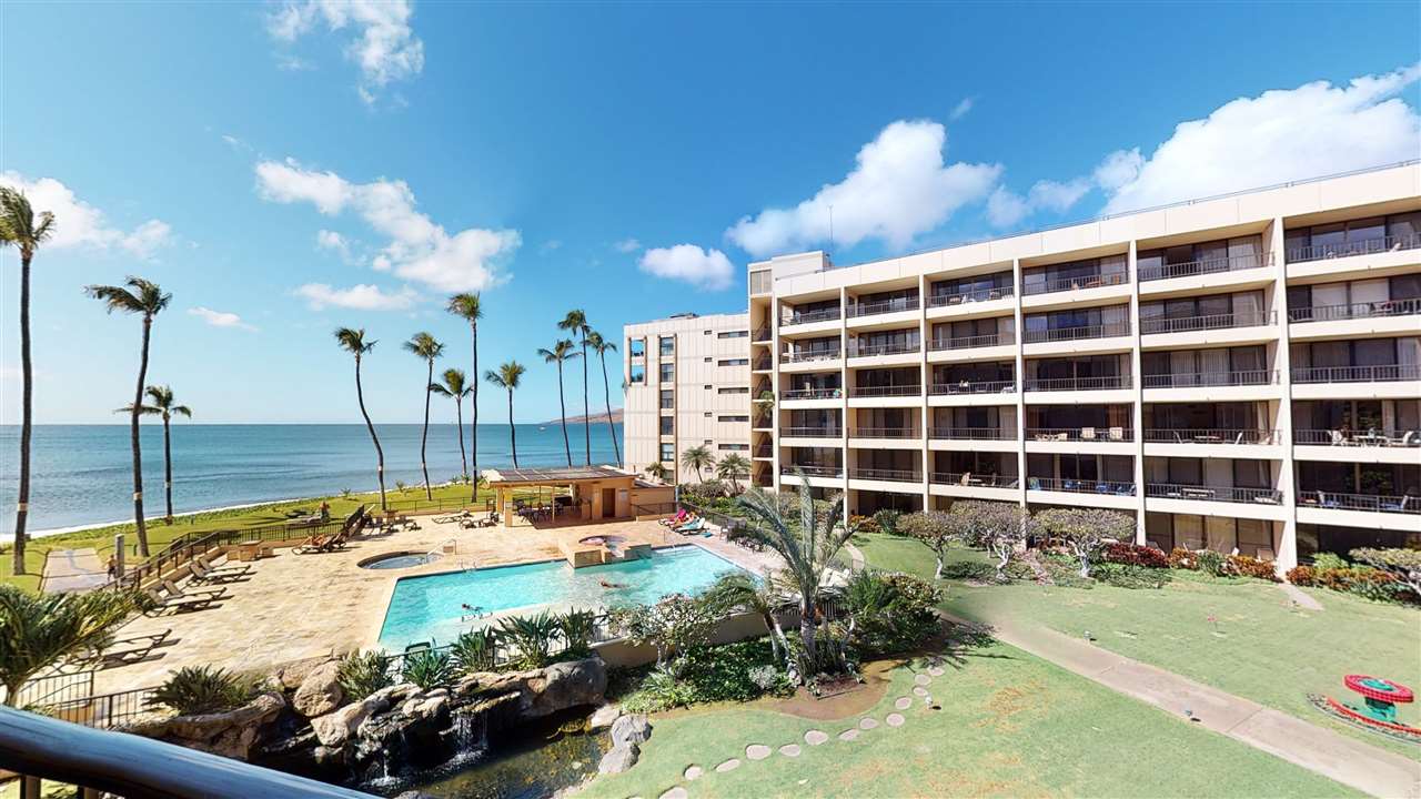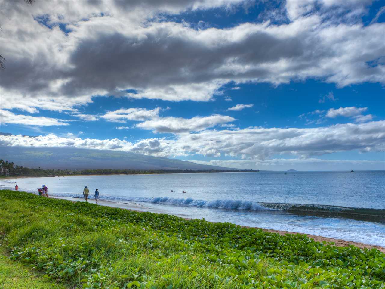 WOW! The very best deal at Sugar Beach. EVERYTHING HAS ALREADY BEEN DONE FOR YOU. This unit was fully gutted and put back together again. Fabulous beach-ey vibe in cool tones. Large plank driftwood porcelain tile flowing throughout. Museum smooth plaster ceilings and walls with 6 inch block baseboards. Shaker style white cabinetry, stainless appliances, shadow gray quartz countertops, fabulous window treatments-no stone was unturned in this renovation! Interior doors and hardware were replaced, washer/dryer cubby was bumped out to accommodate a larger unit, Spa style bathroom with white tile flowing and beautiful glass shampoo inserts. Enjoy sunsets from your lanai while the Koi pond gurgles softly directly underneath you. Sugar Beach Resort is a true Sand in Toes experience. It is a BEACHfront complex sitting on top of Mauis longest stretch of sand-Sugar Beach-over 5 miles long. Sugar Beach is a quiet beach where the sand crabs outnumber the morning strollers by about 100 to 1. Sugar Beach Resort is one of the few complexes with Central AC and en-suite laundry. HOA dues cover electricity, high speed internet, basic cable and so much more. Come enjoy Paradise at its best.