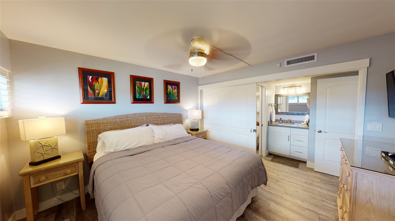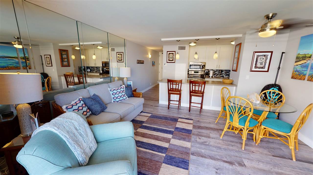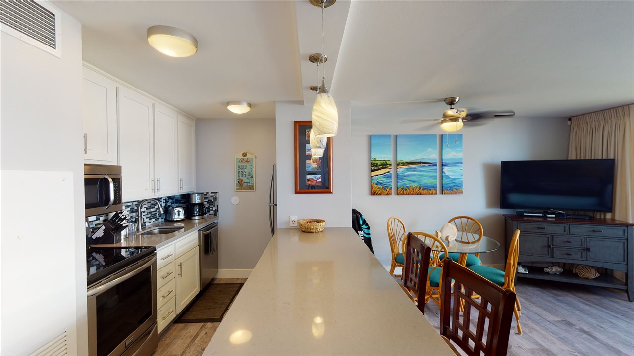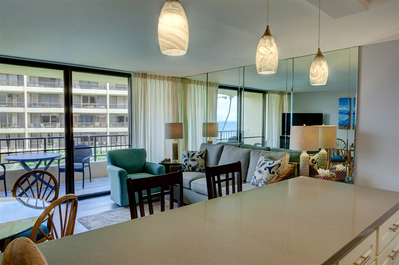 WOW! The very best deal at Sugar Beach. EVERYTHING HAS ALREADY BEEN DONE FOR YOU. This unit was fully gutted and put back together again. Fabulous beach-ey vibe in cool tones. Large plank driftwood porcelain tile flowing throughout. Museum smooth plaster ceilings and walls with 6 inch block baseboards. Shaker style white cabinetry, stainless appliances, shadow gray quartz countertops, fabulous window treatments-no stone was unturned in this renovation! Interior doors and hardware were replaced, washer/dryer cubby was bumped out to accommodate a larger unit, Spa style bathroom with white tile flowing and beautiful glass shampoo inserts. Enjoy sunsets from your lanai while the Koi pond gurgles softly directly underneath you. Sugar Beach Resort is a true Sand in Toes experience. It is a BEACHfront complex sitting on top of Mauis longest stretch of sand-Sugar Beach-over 5 miles long. Sugar Beach is a quiet beach where the sand crabs outnumber the morning strollers by about 100 to 1. Sugar Beach Resort is one of the few complexes with Central AC and en-suite laundry. HOA dues cover electricity, high speed internet, basic cable and so much more. Come enjoy Paradise at its best.