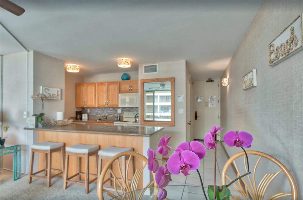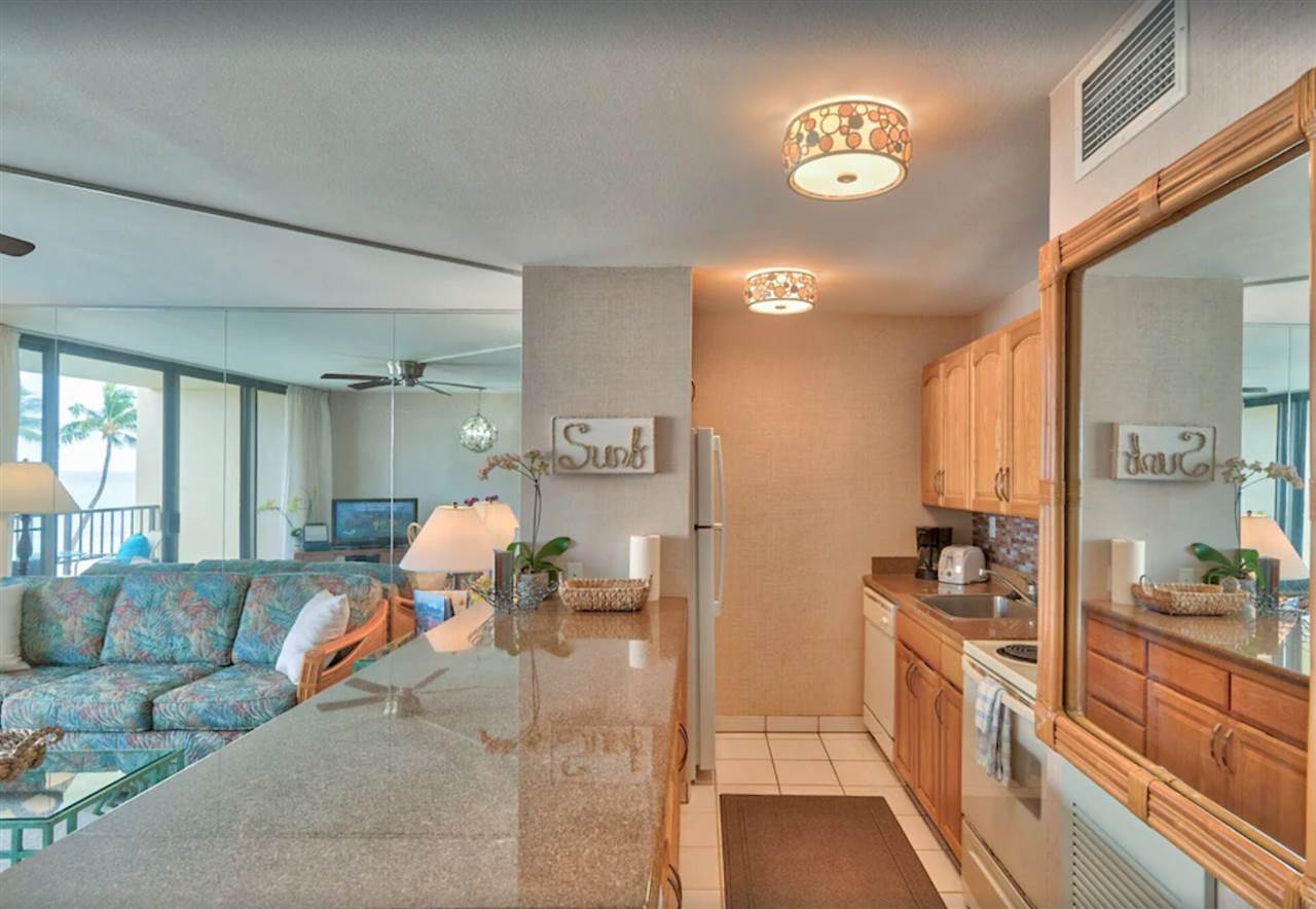 TOES IN THE SAND experience at Sugar Beach Resort. This is an oceanfront complex with all of the goodies- oceanfront pool, oceanfront hot tub, oceanfront dry sauna, oceanfront BBQ grills= no shoes necessary! Welcome to Sugar Beach Resort #406 and its cool beachey vibe. Granite countertops and oak cabinets, smooth ceilings and new plantation blinds. High end tweed textured wall paper throughout in the color tone of Wet Sand. This condo enjoys year round sunsets in addition to spectacular ocean views from your lanai and couch. You will never want to leave! Sugar Beach Resort is the perfect jumping off point for all of your Maui adventures. It is located in the very center of the island on a 5 mile walking beach where the sand crabs outnumber the humans. Morning beach strolls are captivating. This Resort complex has en-suite washer/dryer in each unit as well as Central AC. Monthly HOA dues cover electricity, water, refuse, high speed internet, basic cable, long distance to all of North America and all common area maintenance and staff.