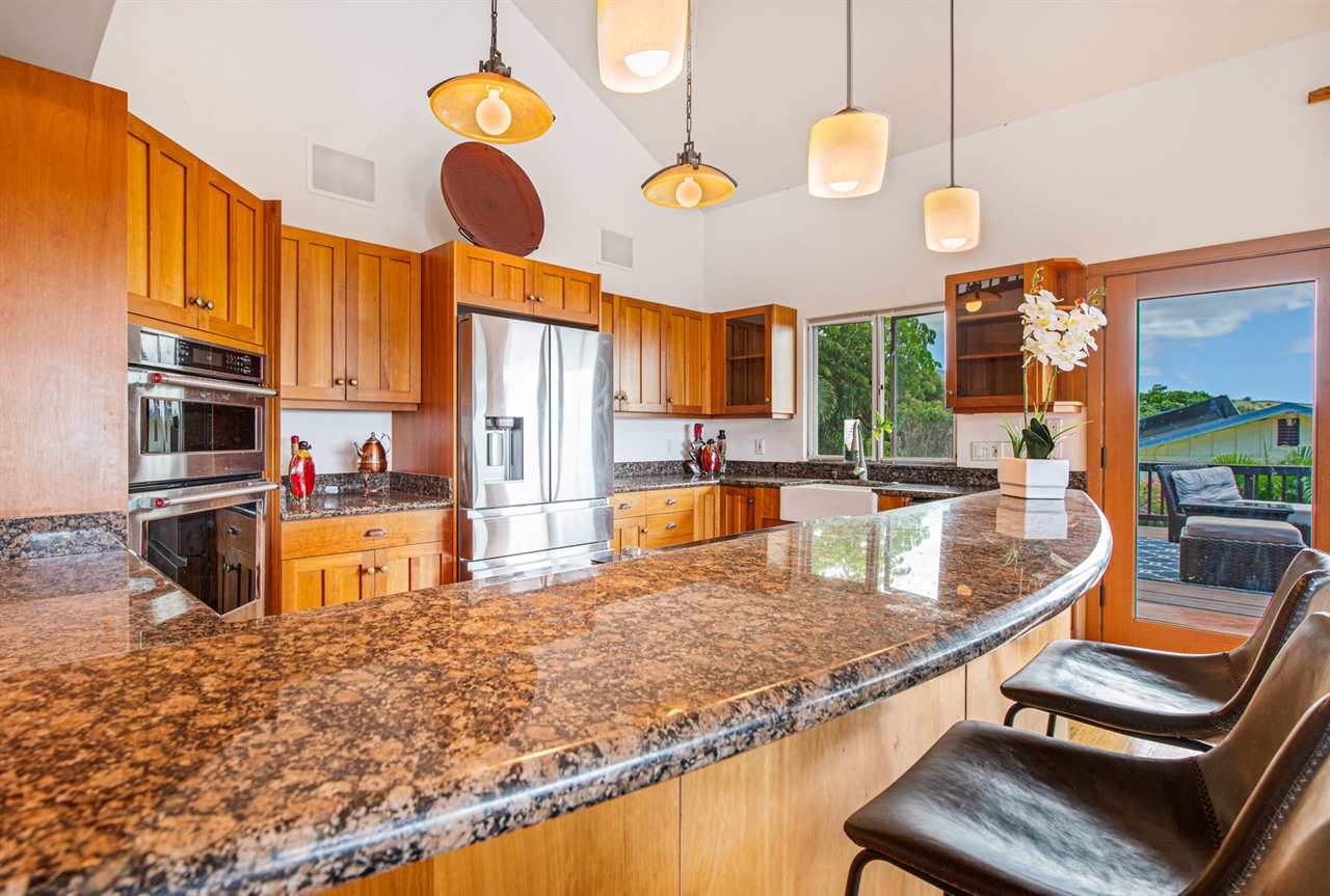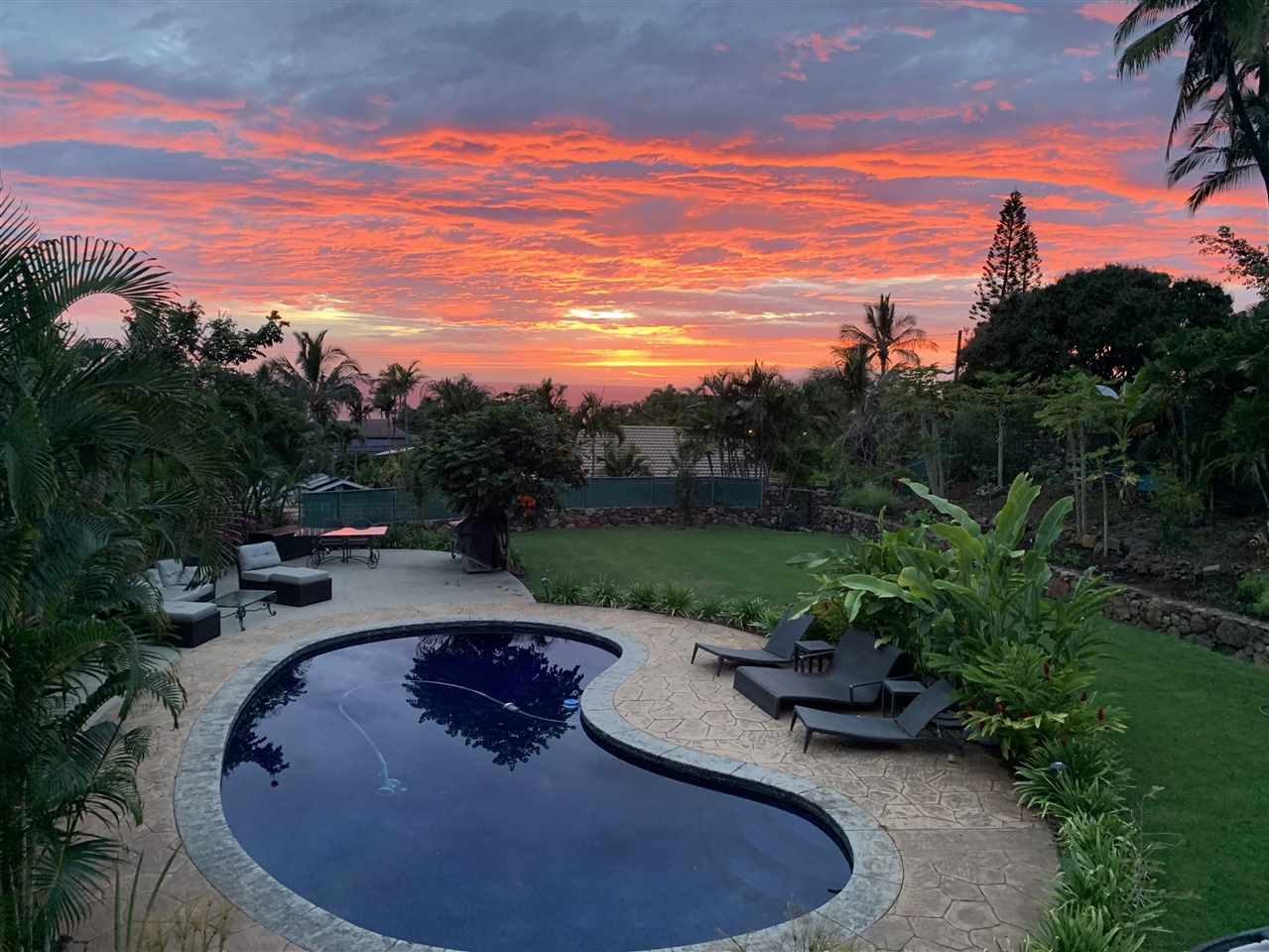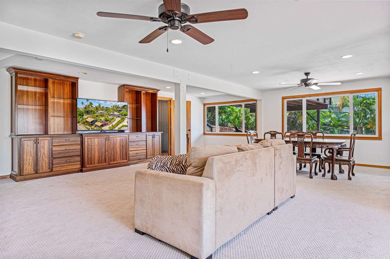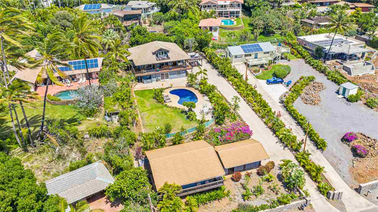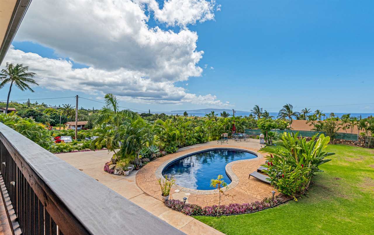 Maui Meadows Jewel! Spacious 3,800+ sf oasis with panoramic ocean views, tranquil in ground pool with resort like tropical surroundings, and a detached ohana thoughtfully located to optimize privacy. The additional view deck is perfect for enjoying breath taking sunsets, relaxing with a beverage, or enjoying barbecues with family and friends. The flexible floor plan main home, large 1/2 acre lot with plentiful fruit and palm trees, and 2 bedroom, 1 bathroom detached ohana combine for a rare South Kihei opportunity. Conveniently located just a short drive to soft sand beaches, Wailea golf and tennis amenities, numerous dining and shopping options and popular Kihei town. Offered furnished and ready for your enjoyment.