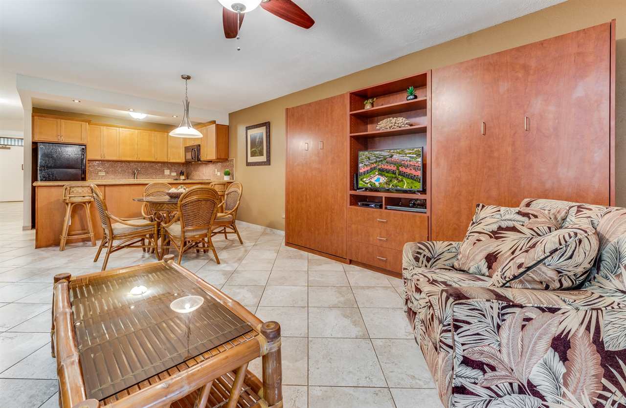 Island style! Enjoy easy ground floor living in this spacious one-bed, two-bath condo in one of S Kihei's favorite vacation rental destinations. Conveniently located in the inner-courtyard and nearby a gorgeous orchid covered wall and pool, this fully furnished condo has upgraded kitchen and baths, granite countertops, large tile flooring throughout, all newer appliances and king bed. The two hidden Murphy beds are cleverly disguised during the day and add additional sleeping options for the family at night. And yes, the sofa is a sleeper. The shaded lanai is ideal for lounging with a cocktail or enjoying the expansive tropical scenery. Kamaole Sands manicured lush tropical 15 acre property is in one of the most desirable locations in all of South Maui, directly across the street from the spectacular sandy beach at Kamaole III Beach Parks grassy lawn and childrens playground, nearby shops, restaurants, the Kihei boat harbor and Waileas world class shopping center. The resorts amenities include a large pool, kids pool, two jacuzzis (one adult only), exercise room, activity desk, BBQ and picnic areas, 4 tennis courts, kayak/surfboard storage and a beautiful freshwater pond with Kam Sands signature water features. Dont miss this opportunity, book your showing today.