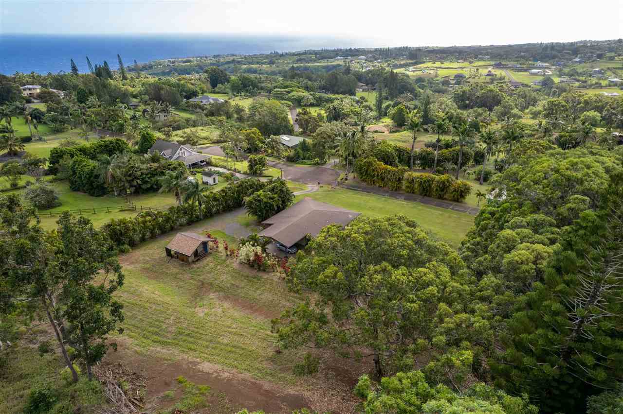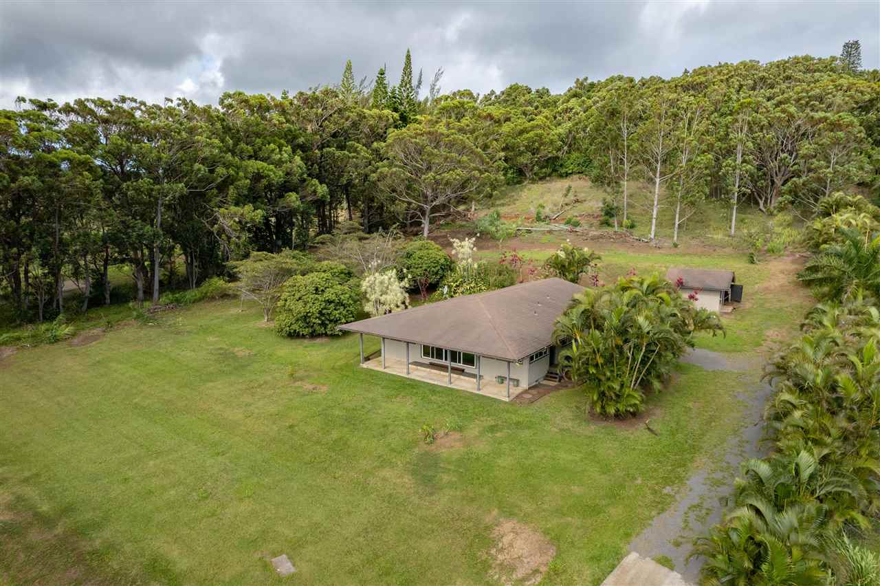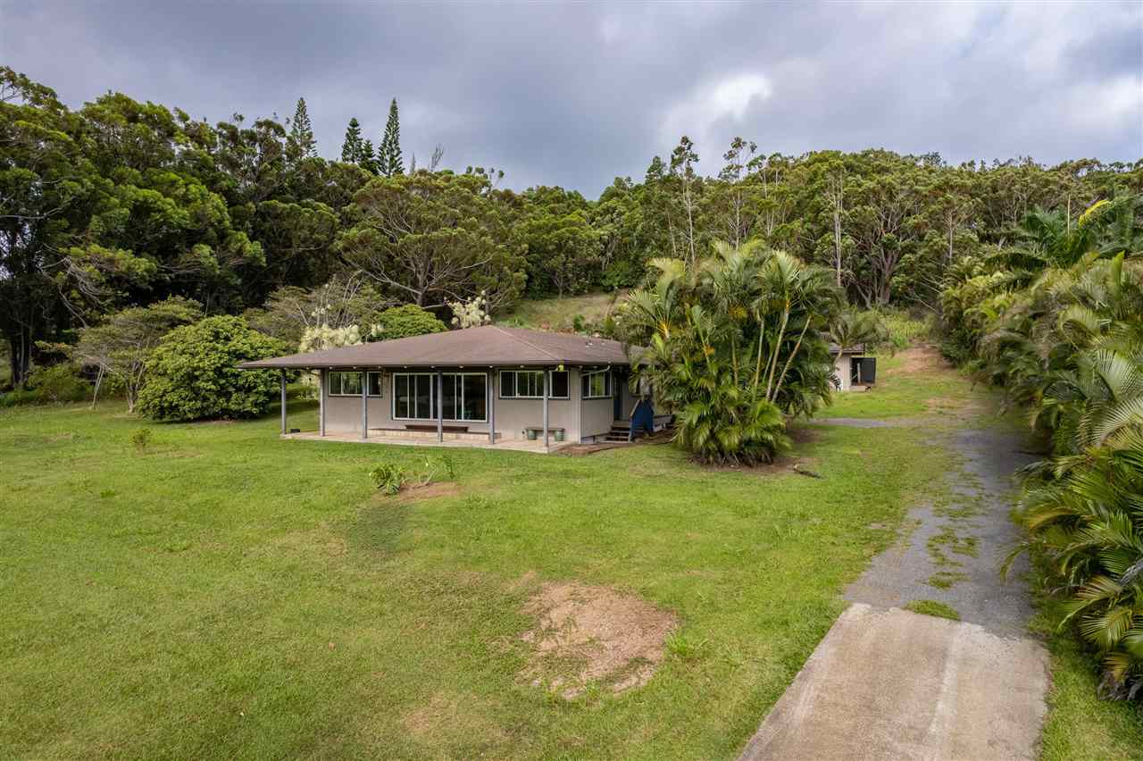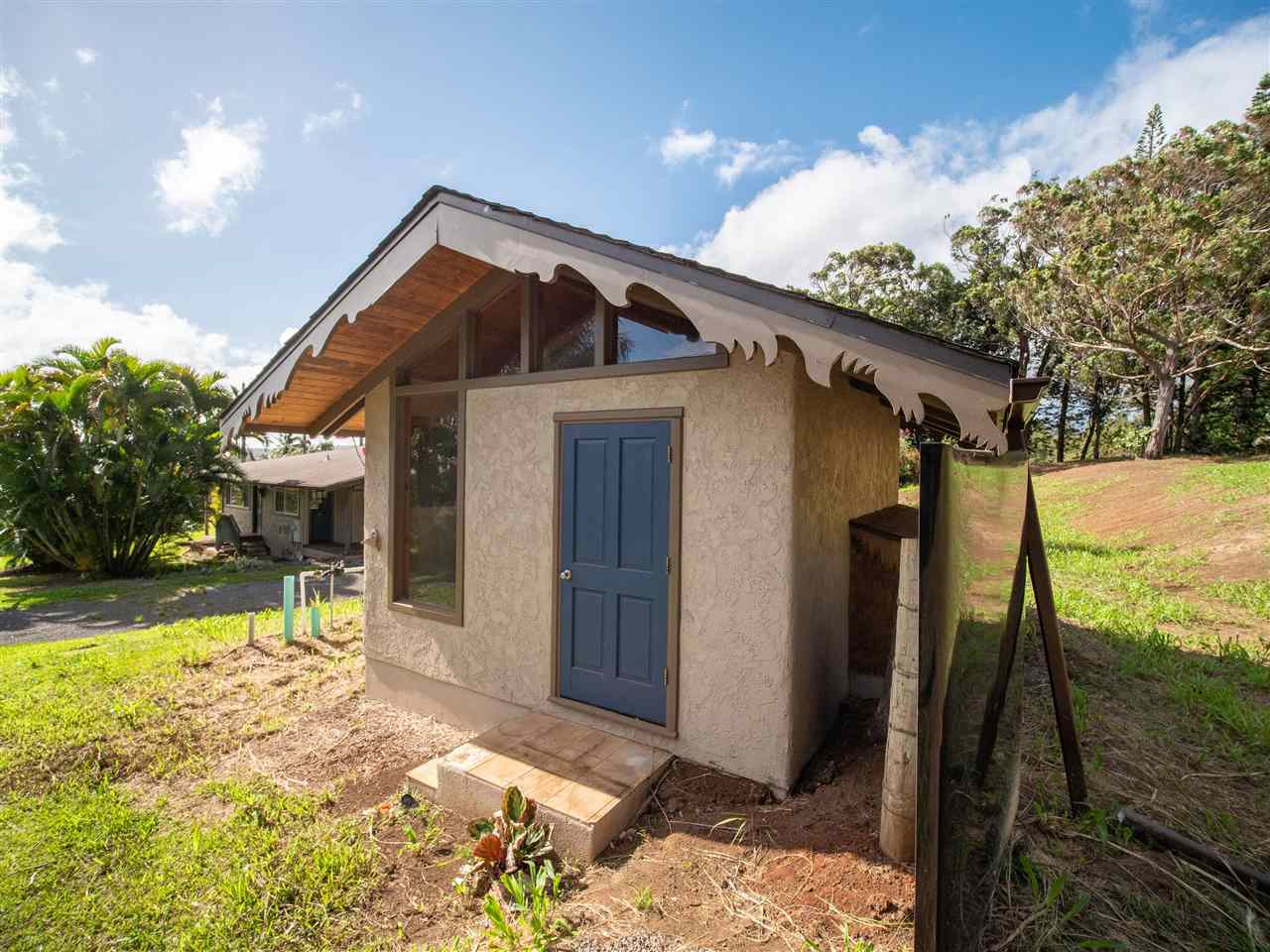 Haiku Gem, ultimate Privacy, situated at the end of the cul-de-sac on a private road in Windward Estates, one of Haiku's best neighborhoods. Custom home of stucco exterior, hardwood floors, and many fine craftsman-like, artistic details. Plenty of covered lanai area and an awesome detached storage chalet. Mature fruit trees throughout the property including star fruit, star apple, citrus, bananas, papaya, and more! The building site for the second dwelling is ready and offers a great ocean view. This 2 bedrooms 2 baths just had a beautiful kitchen renovation completed January 2021. A bedroom and bathroom off of each wing of the living space with private entry from the lanai give each bedroom maximum privacy. Call your favorite Realtor today for a showing!