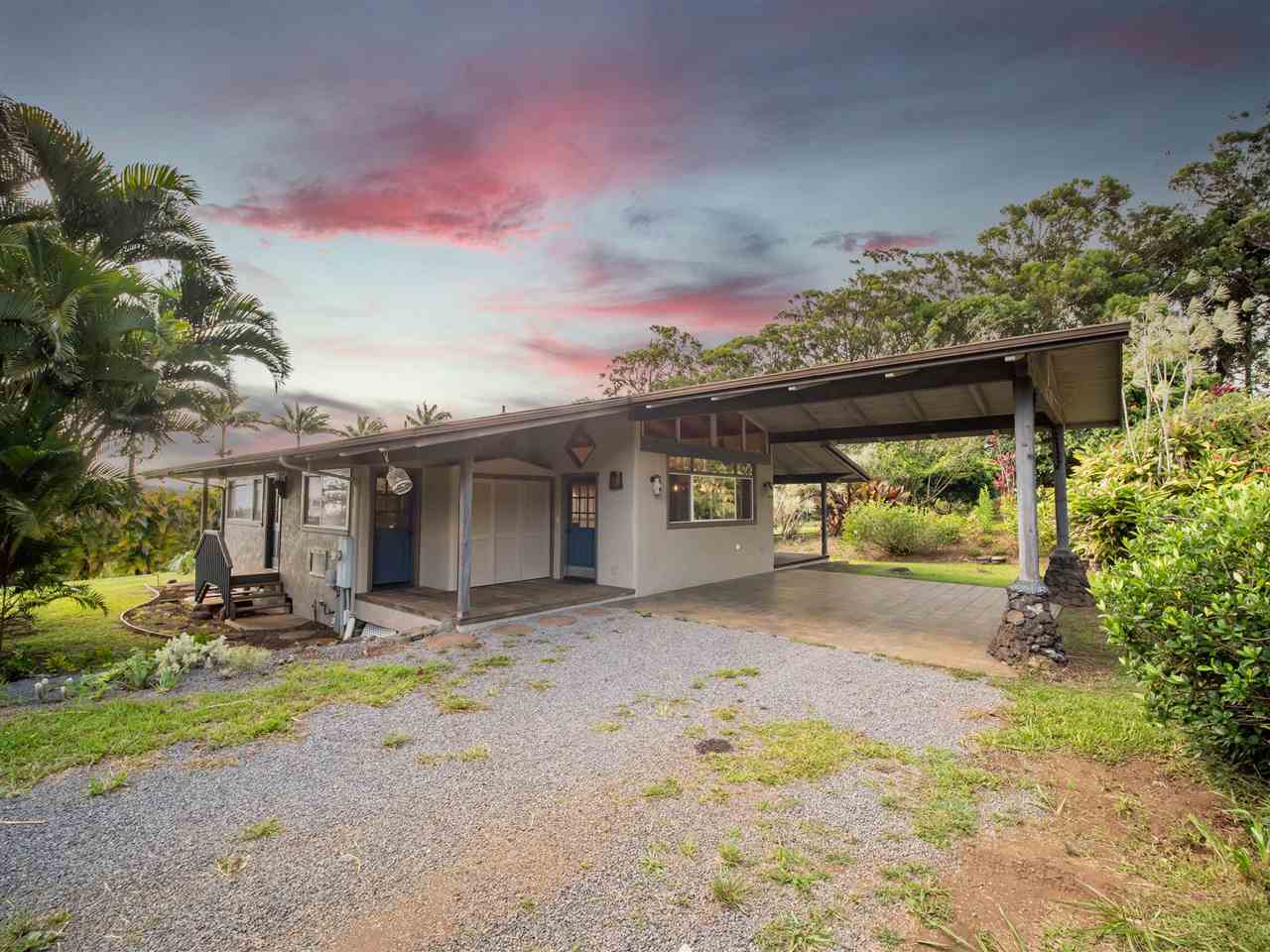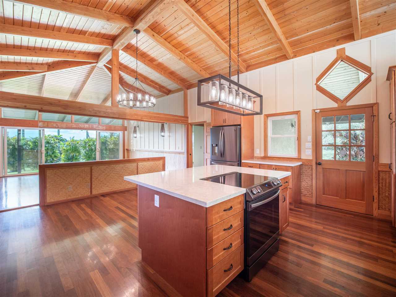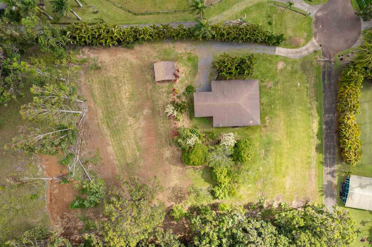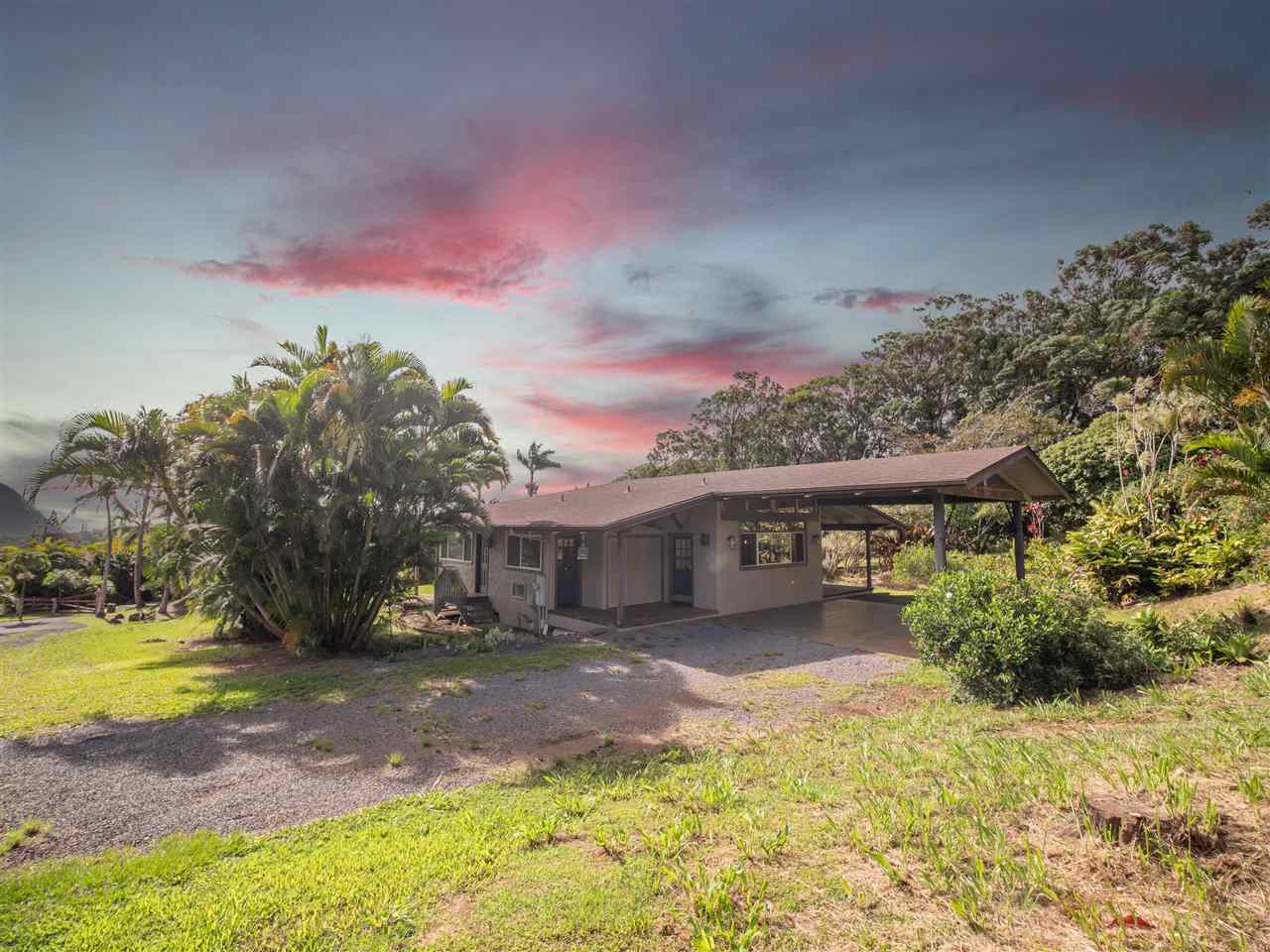 Haiku Gem, ultimate Privacy, situated at the end of the cul-de-sac on a private road in Windward Estates, one of Haiku's best neighborhoods. Custom home of stucco exterior, hardwood floors, and many fine craftsman-like, artistic details. Plenty of covered lanai area and an awesome detached storage chalet. Mature fruit trees throughout the property including star fruit, star apple, citrus, bananas, papaya, and more! The building site for the second dwelling is ready and offers a great ocean view. This 2 bedrooms 2 baths just had a beautiful kitchen renovation completed January 2021. A bedroom and bathroom off of each wing of the living space with private entry from the lanai give each bedroom maximum privacy. Call your favorite Realtor today for a showing!