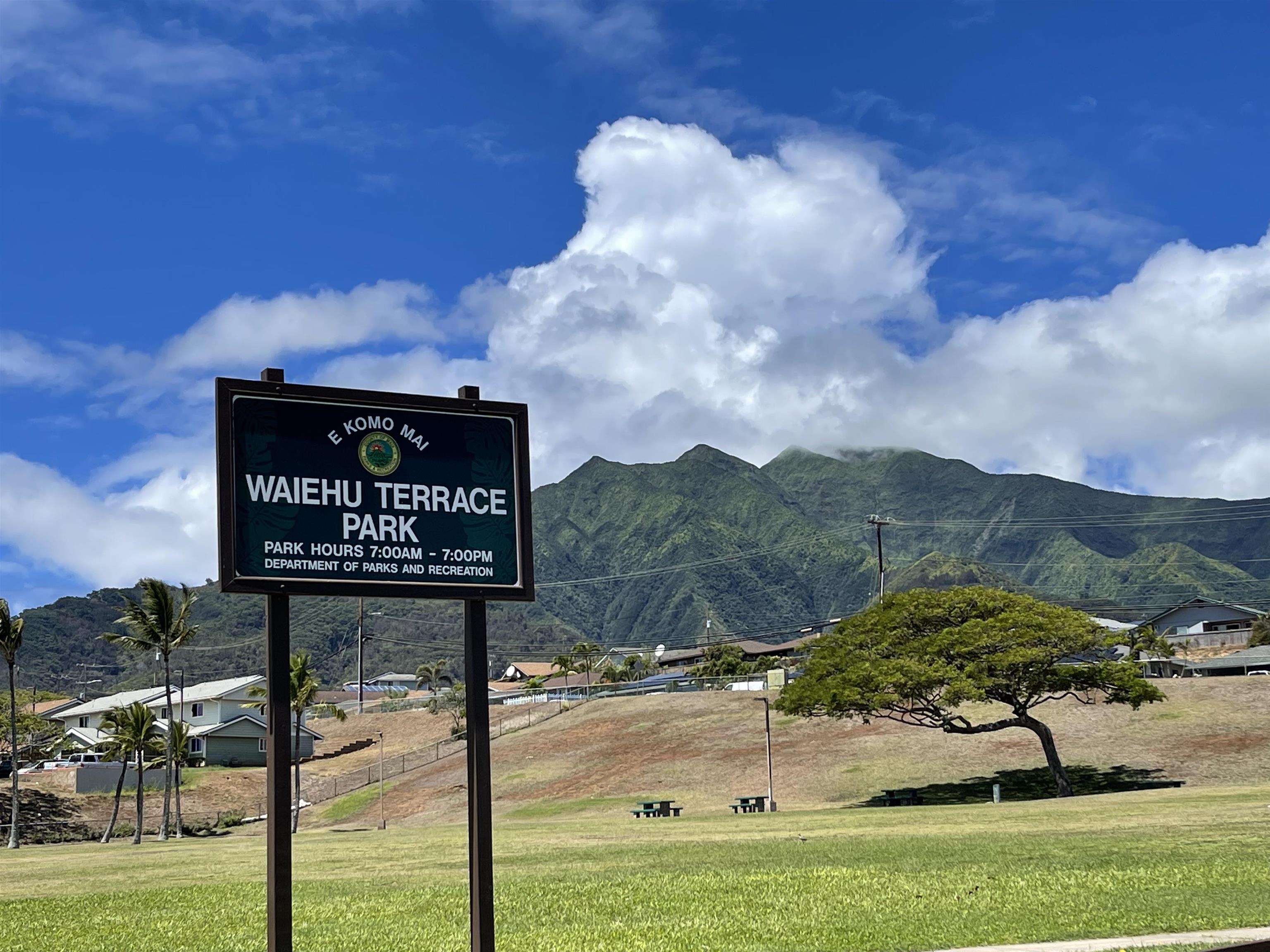 Wailuku 3 bedroom & 2 bath home, just steps away from Waiehu Terrace Park. Enjoy a large yard, with beautiful mountain and partial ocean views. The home includes: a covered lanai, 2 car garage with auto garage door, storage, laundry room, rain gutters, yard fence and walls, and polished ceramic tile floors. The yard and home does need some TLC and future remodeling, but it is Not a tear down and has lots of potential. Property is being sold As-Is. Buyer to do their Due Diligence.