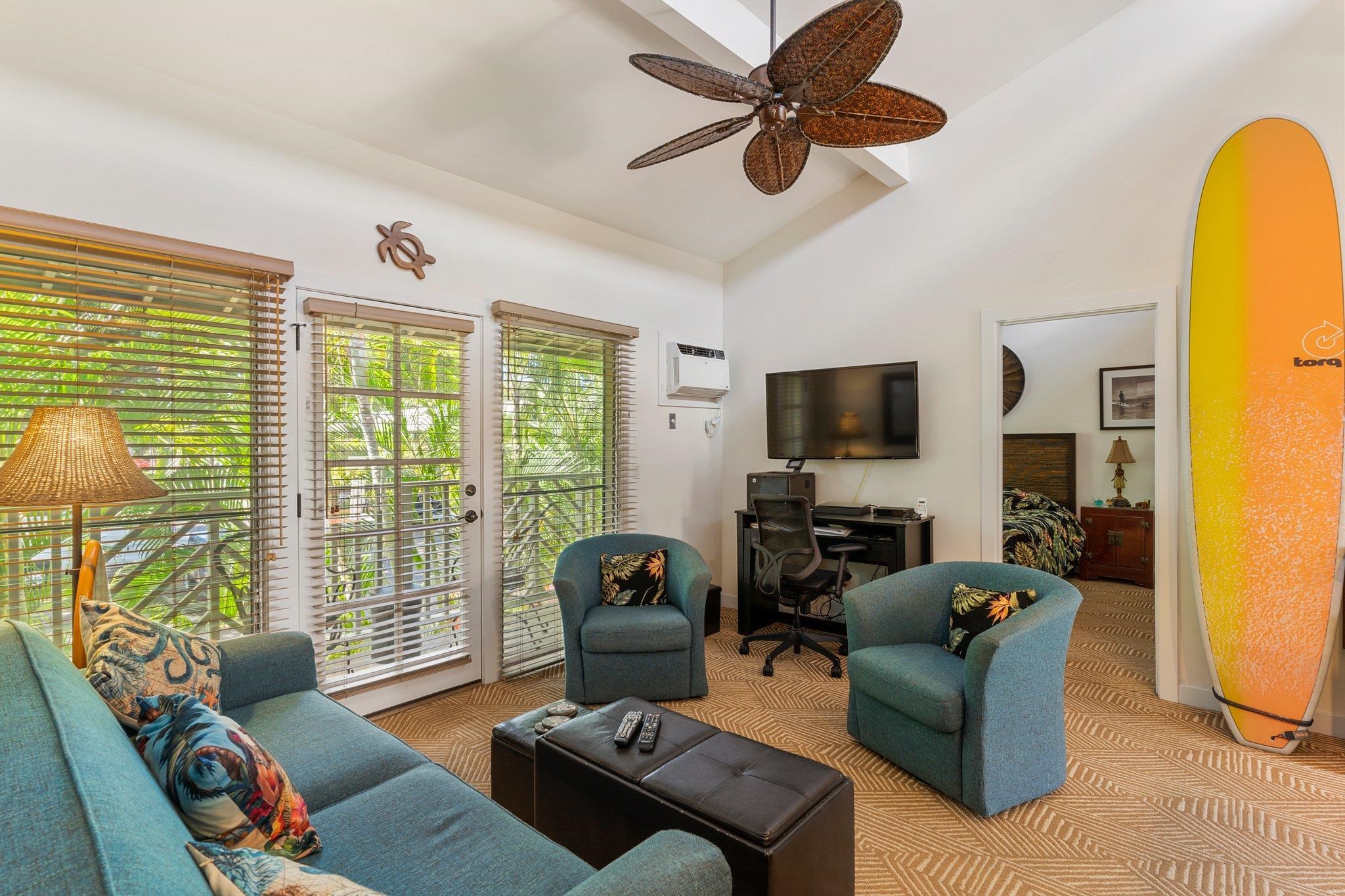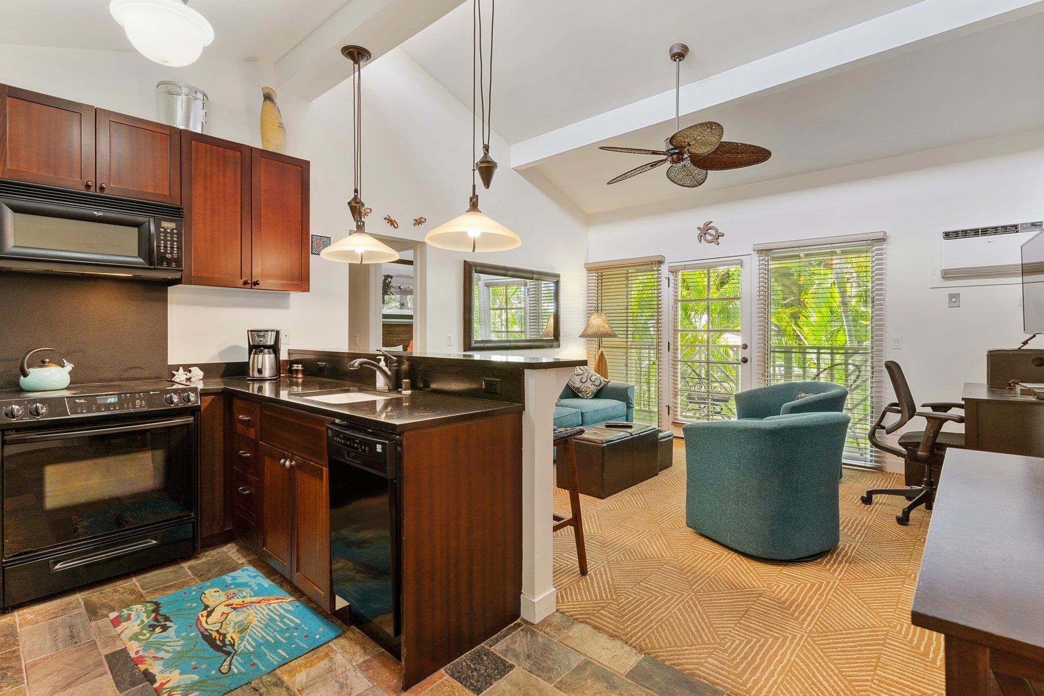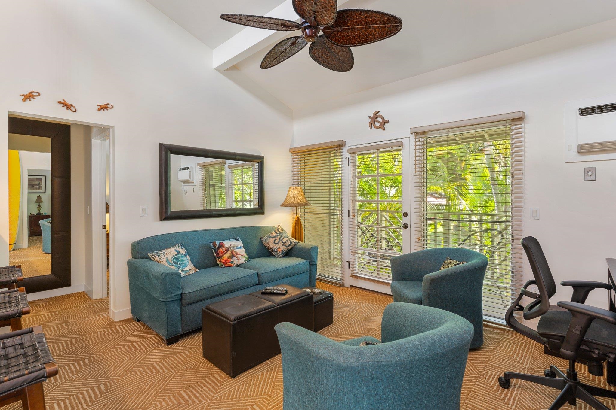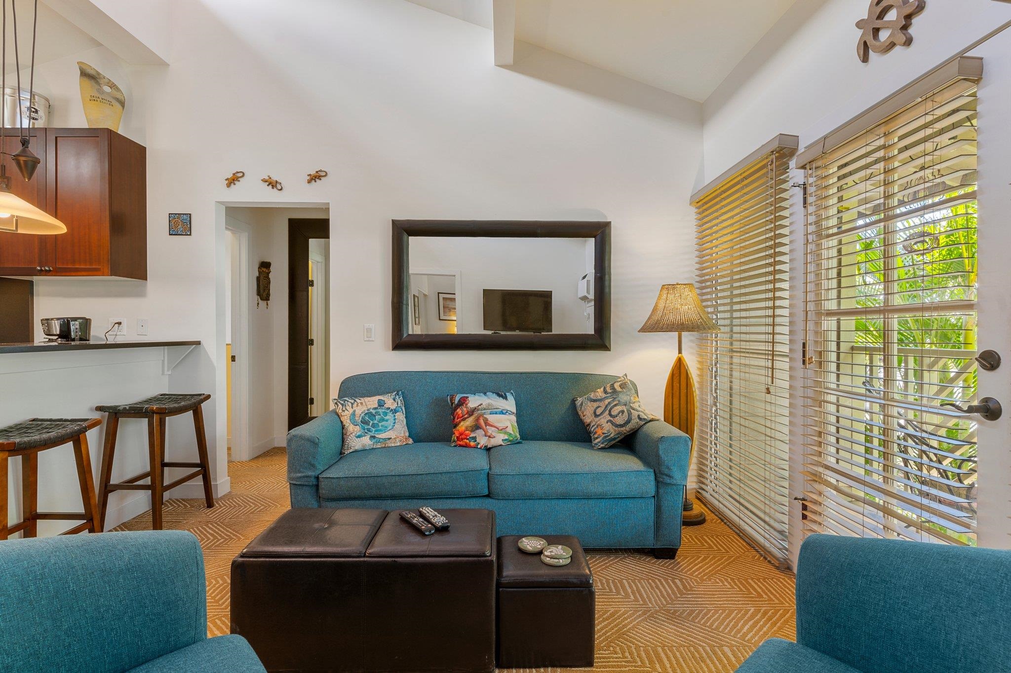 Welcome to the Aina Nalu Resort in the heart of Historic Lahaina town. Unit K-210 is a furnished 2 bedroom 2 bathroom highly desirable corner unit that allows vacation rentals. This unit is located in the quiet Bamboo building (K) on the second floor. There are two suites with king sized platform beds separated by a spacious living room, lanai, and a fully equipped kitchen. Each suite features a large bathroom with a walk-in stone shower. Vaulted ceilings with clerestory windows supply ample natural lighting, creating a sense of spaciousness. The lanai is surrounded by mature Areca palm trees that provide additional privacy and a natural sun shade. Last April, two new LG 1500-BTU air conditioners were installed in both the bedrooms and living room and a new GE washer/dryer was installed. Fresh paint job completed May 2020. Aina Nalu's tropical oasis spans 8.6 acres and boast a multitude of amenities; meditation gardens, a large infinity pool, a second pool, a large hot tub, an open-air lobby, an expansive open-air clubhouse with barbecues, and multiple Balinese bungalows nestled among well maintained lush tropical landscaping with waterfalls and fountains. Lively Front Street is just one block away with shopping, restaurants, beaches and activities to choose from. Basic cable and WIFI are covered by the HOA dues. Don't delay, call your favorite realtor today!