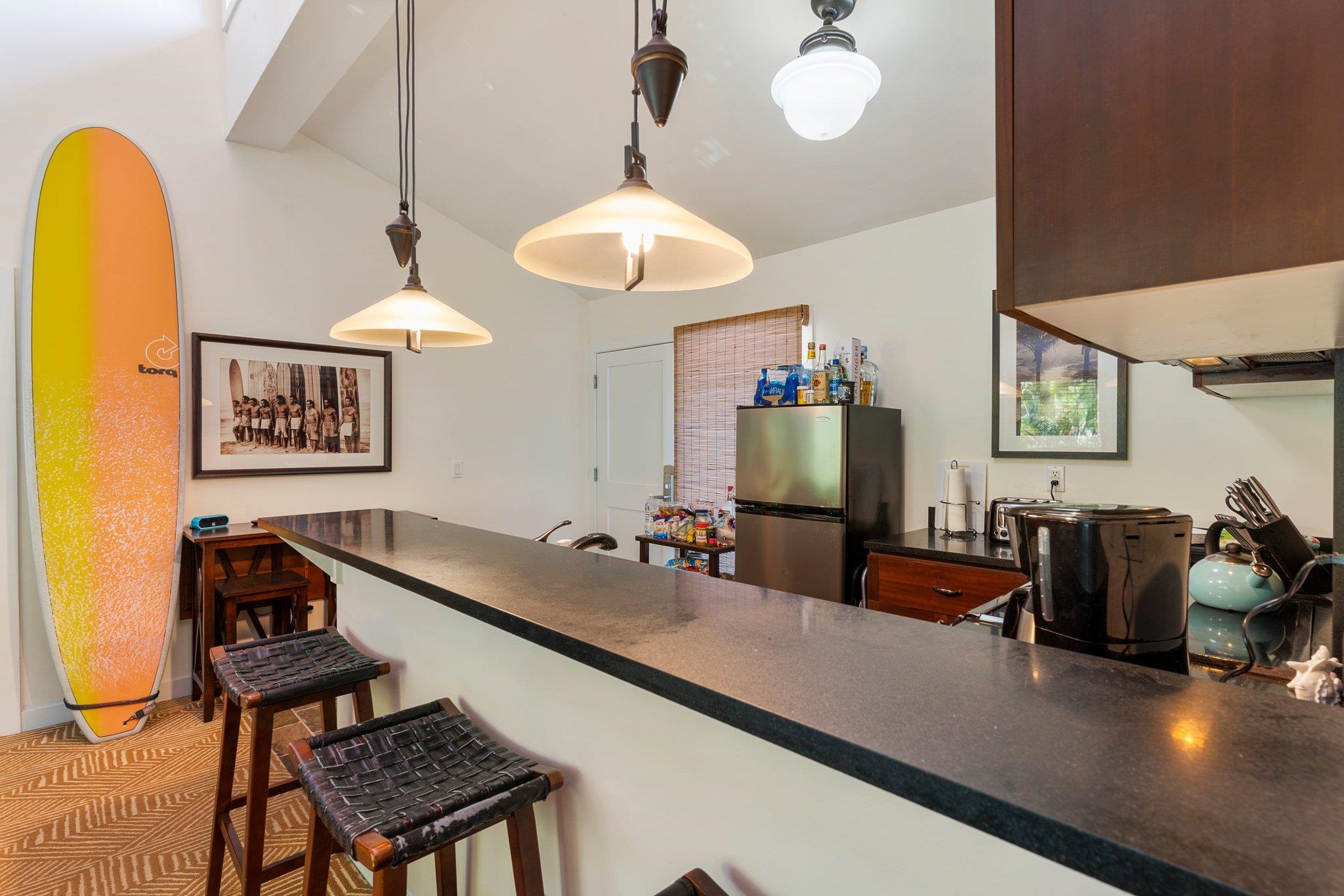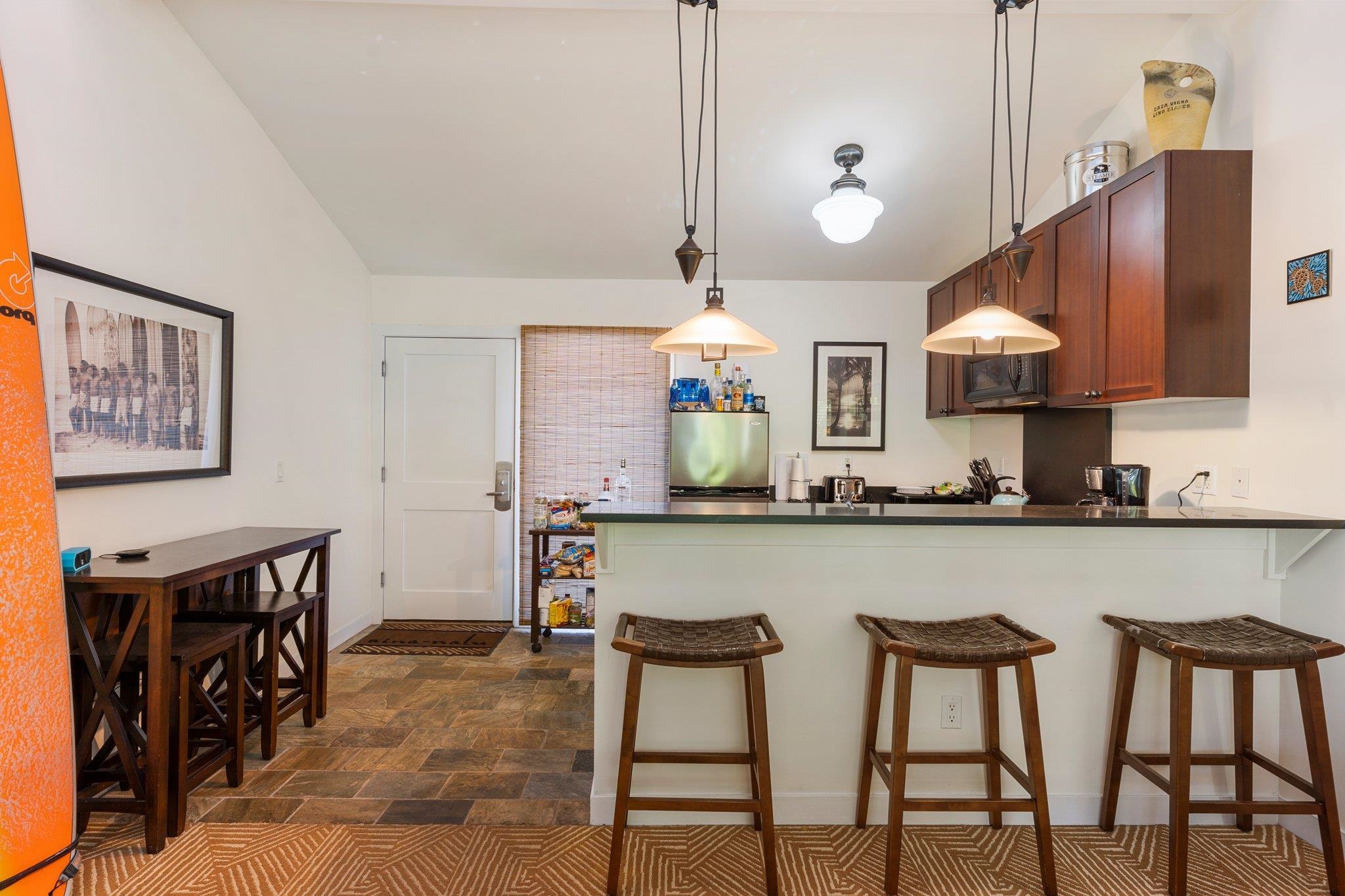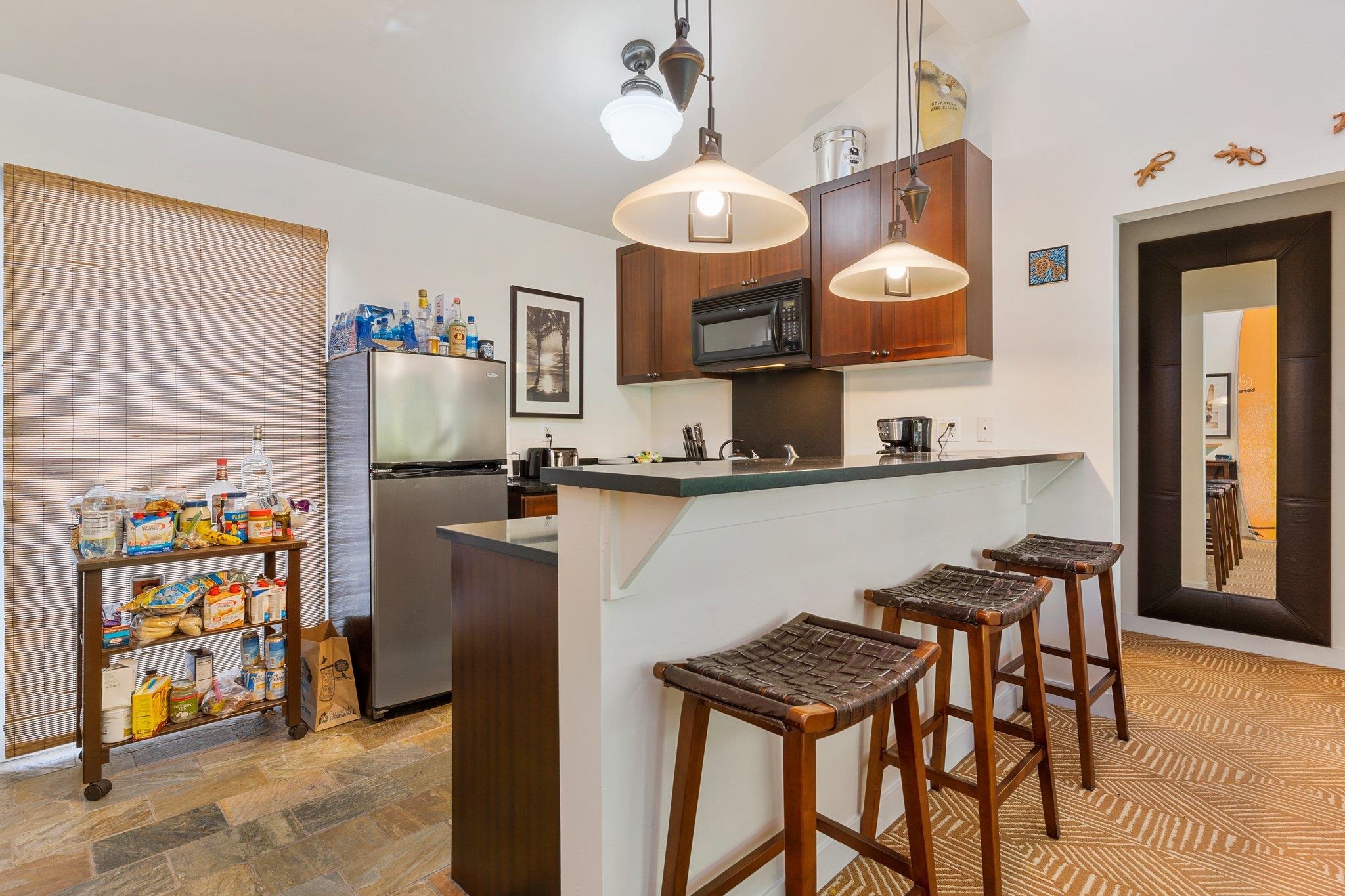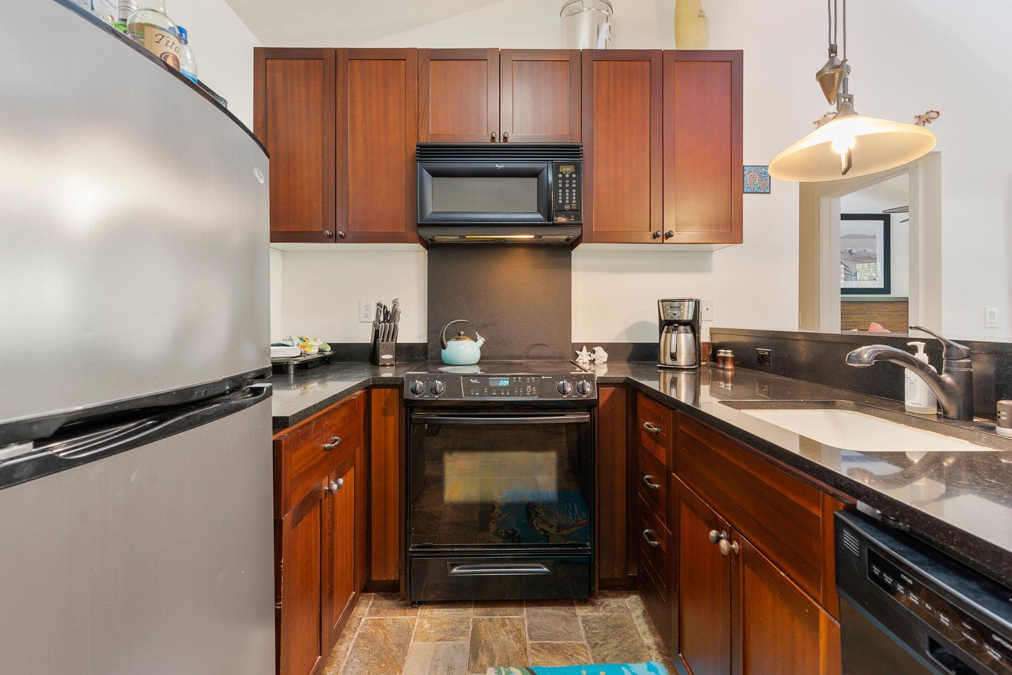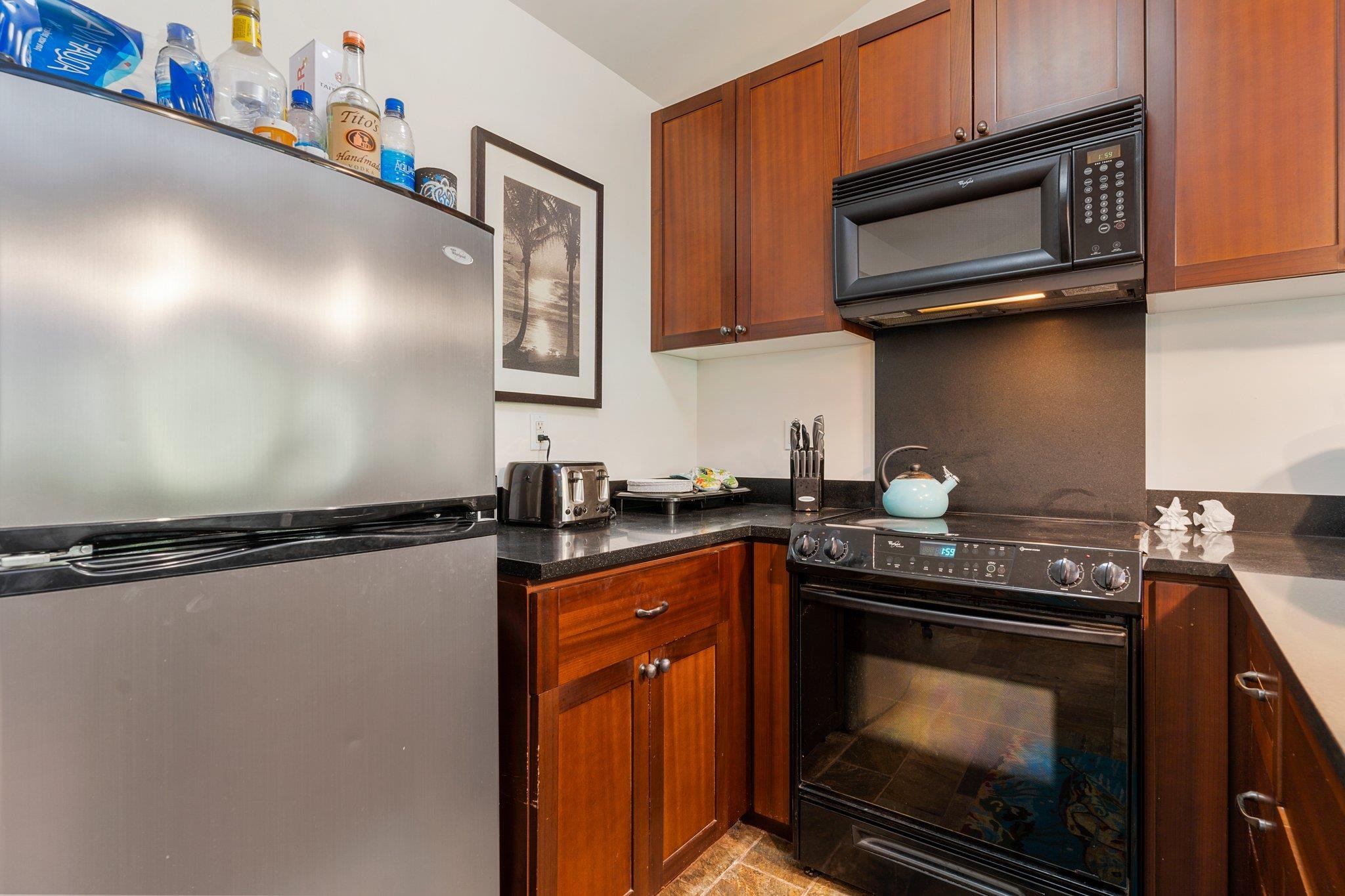 Welcome to the Aina Nalu Resort in the heart of Historic Lahaina town. Unit K-210 is a furnished 2 bedroom 2 bathroom highly desirable corner unit that allows vacation rentals. This unit is located in the quiet Bamboo building (K) on the second floor. There are two suites with king sized platform beds separated by a spacious living room, lanai, and a fully equipped kitchen. Each suite features a large bathroom with a walk-in stone shower. Vaulted ceilings with clerestory windows supply ample natural lighting, creating a sense of spaciousness. The lanai is surrounded by mature Areca palm trees that provide additional privacy and a natural sun shade. Last April, two new LG 1500-BTU air conditioners were installed in both the bedrooms and living room and a new GE washer/dryer was installed. Fresh paint job completed May 2020. Aina Nalu's tropical oasis spans 8.6 acres and boast a multitude of amenities; meditation gardens, a large infinity pool, a second pool, a large hot tub, an open-air lobby, an expansive open-air clubhouse with barbecues, and multiple Balinese bungalows nestled among well maintained lush tropical landscaping with waterfalls and fountains. Lively Front Street is just one block away with shopping, restaurants, beaches and activities to choose from. Basic cable and WIFI are covered by the HOA dues. Don't delay, call your favorite realtor today!