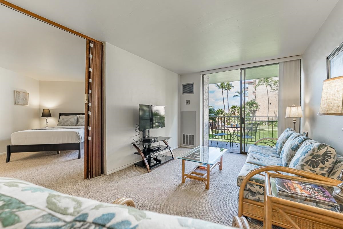 Synchronicity at its finest! Unit #222 is a 1 bedroom, 1 bathroom, 799 sq. ft. vacation rental that could be used to relax and unwind when you are at home on Maui, or generate some income when you are traveling and away for work and play! This renovated unit has custom tile work, granite countertops, hardwood cabinets, and a beautifully converted shower. The view from this unit is also hypnotic overlooking the pool and into the blue sea. Unit #222 is being sold fully furnished. Schedule your appointment for a showing today!