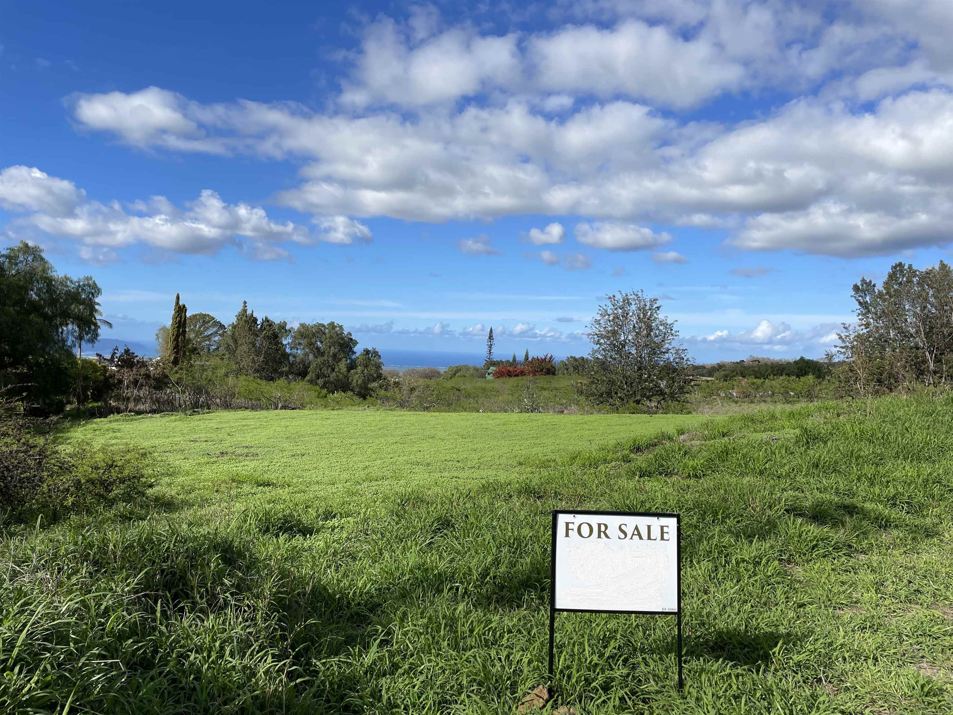 Outstanding opportunity for a rare acreage lot with views of Haleakala and the ocean with NO CC&Rs, and non-CPR lot. Located in a quiet residential neighborhood of nice homes, this 2.23 acre lot has a large, level area for building a main home with ocean views, plus another smaller area at the northeast corner (with view of Iao Valley and West Maui Mountains) that would provide excellent privacy from the main home building site. 5/8" installed water meter. Cable, electric and stand pipe located at corner. Bordered on 2 sides with fencing, and by dead end road (Papipi) on the other 2 sides, the lot lines are easy to identify. Survey markers are visible. Just 2 miles past True Value in Kula, turn right on Naalae. Proceed 1.5 miles to Ahinahina Place. Located at the end of the culdesac. Sign on property.