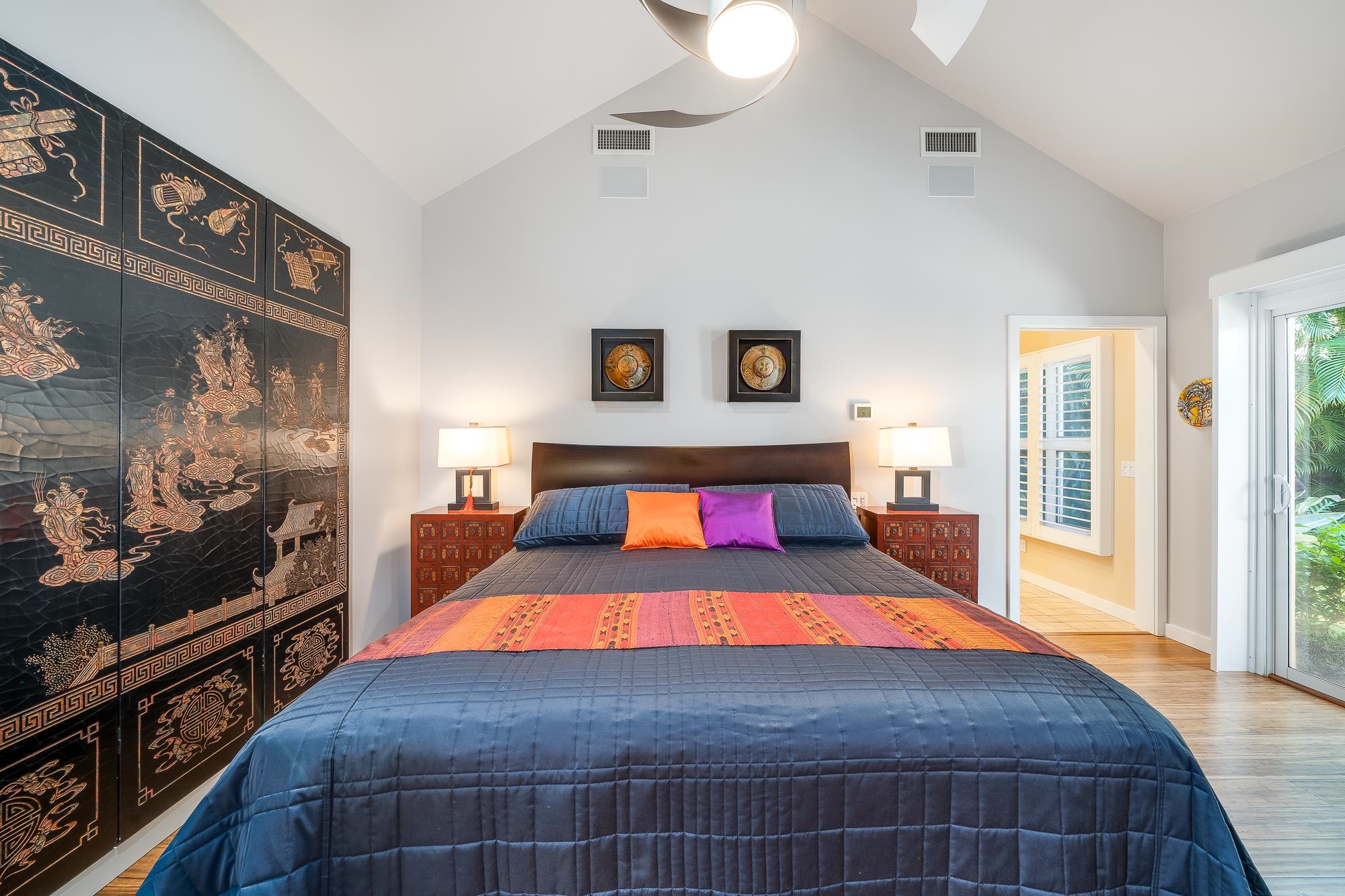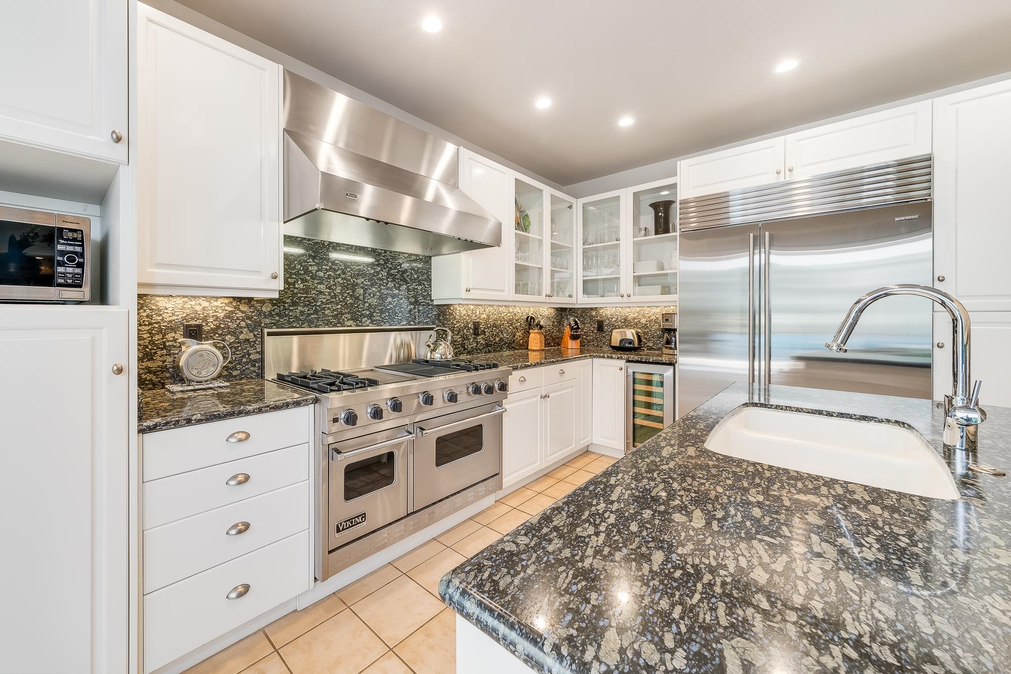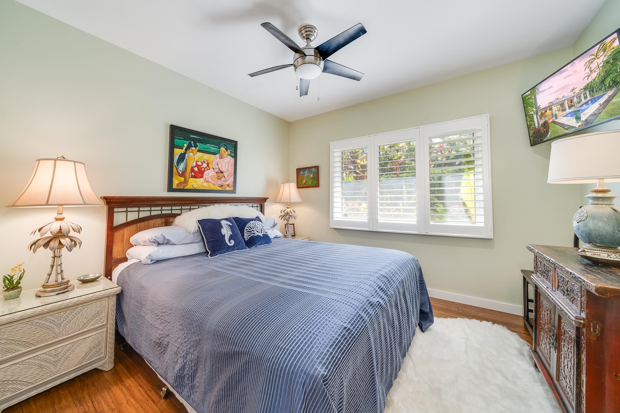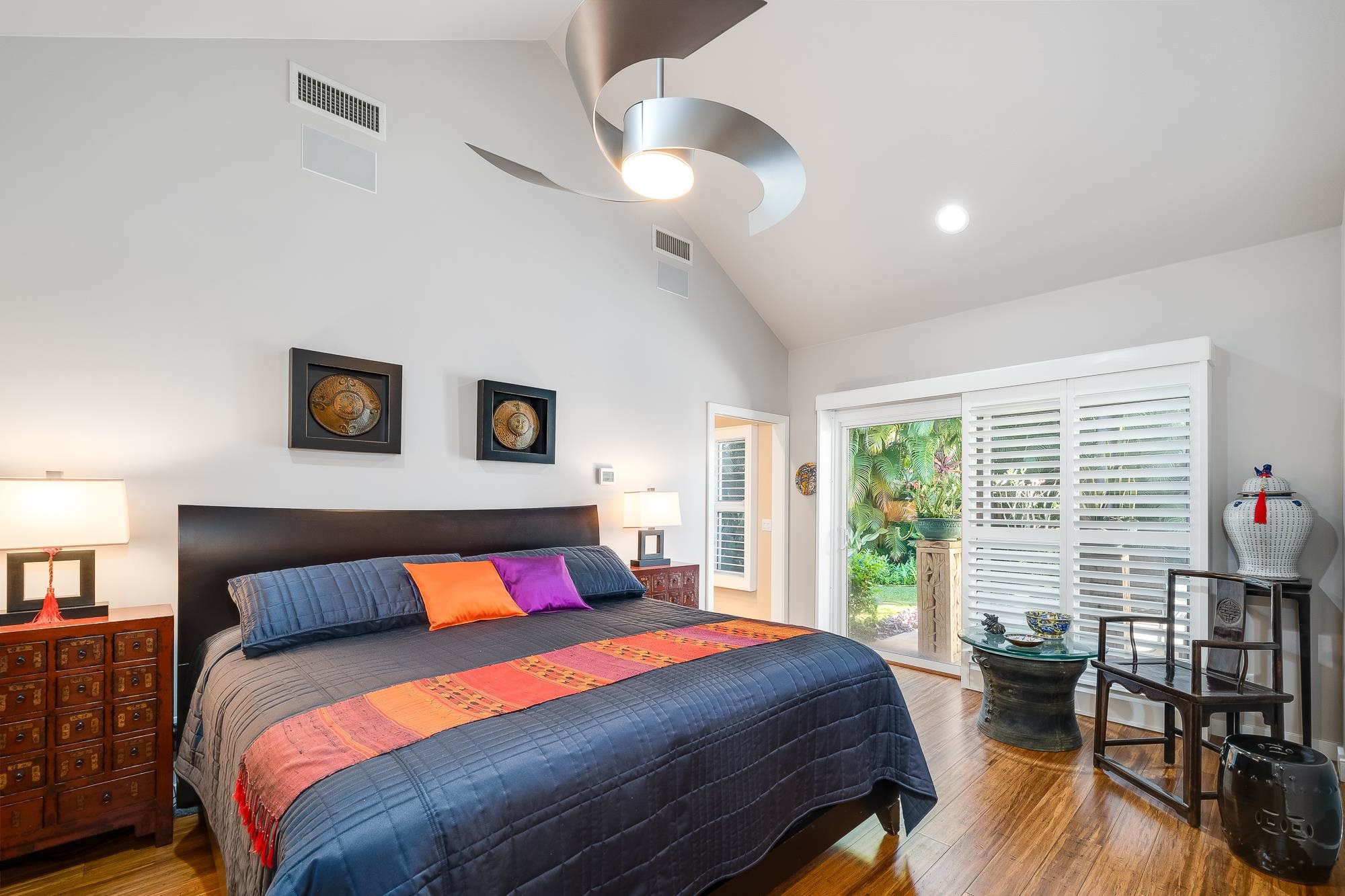Artistic landscaping and modern interiors are combined in this attractive Wailea home. A spacious, open floor plan and chefs kitchen lead to an outdoor heated pool and covered lanai, making this the perfect setting to host and entertain guests. You will be able to enjoy South Mauis comfortable year-round climate and walk to its world class dining and shopping options thanks to the location of this 3-bedroom, 3-bath home. Located in the pristine gated community of Wailea Pualani, this elegant space features spectacular natural lighting throughout. The home is further illuminated by floor to ceiling pocketing glass doors dressed with electric shades that lead to a quartzite tiled lanai and outdoor kitchen with a built-in grill, refrigerator & wet bar. The exceptional master suite comes replete with bamboo wood floors and a large walk-in closet. The accompanying master bath features a deep spa tub and double shower. The home comes completely furnished and even includes 44 PV Solar Panels, 2 Tesla Batteries, high-end surround sound in the master suite, living room and lanai area. Come Surround yourself with paradise.
