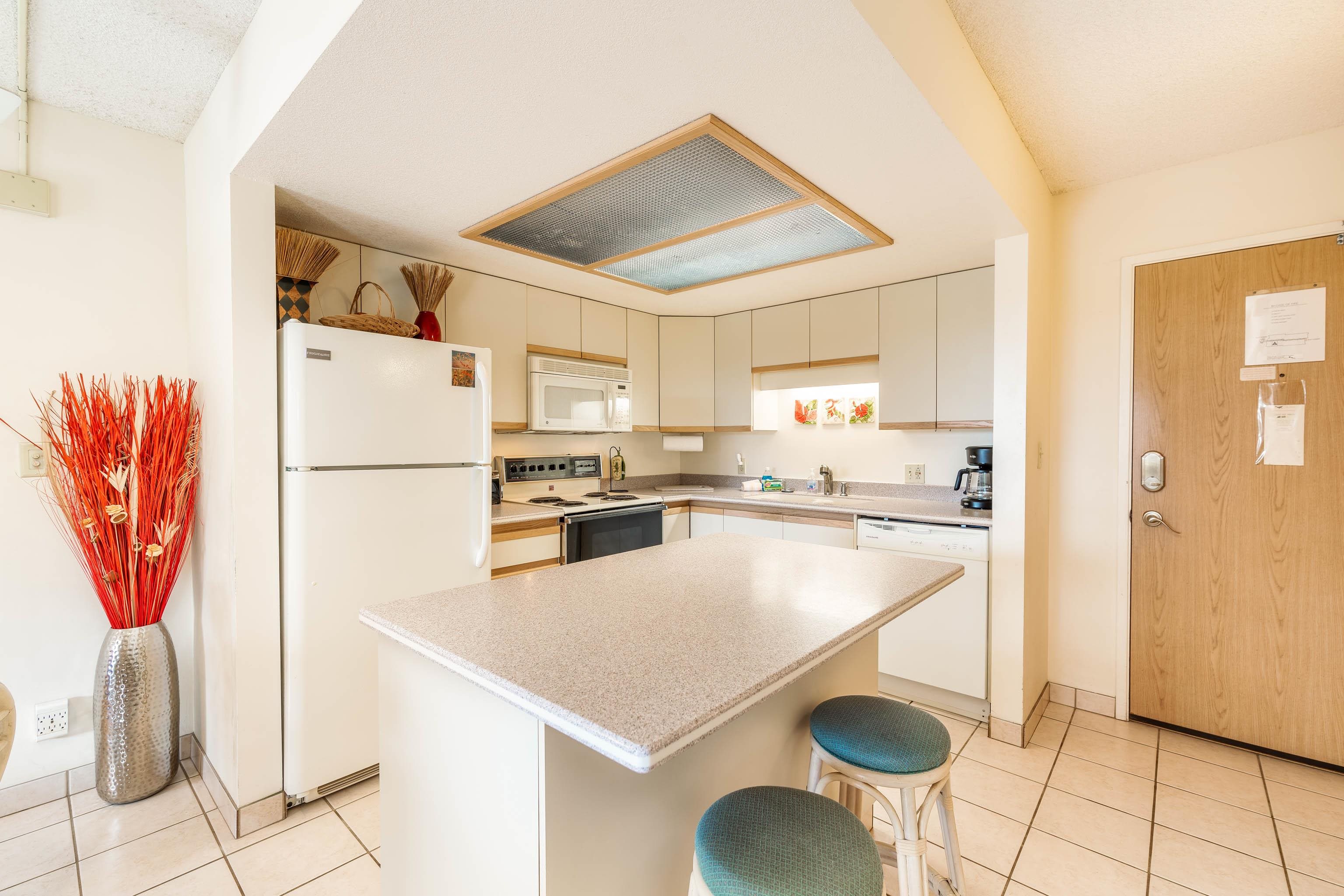 Welcome to Maui Banyan H-303. This 1 bedroom 2 bathroom heavily booked vacation rentable condo is situated in South Kihei across from Kamaole Beach Park II. The H building in Maui Banyan provides convenient access to two pools, bbq areas, tennis courts and is a short distance to your deeded stall in the parking garage. The layout of this unit has an open concept design, creating a sense of spaciousness with tile flooring throughout. Frosted glass pocket bedroom doors provide the interior living area with an abundance of natural lighting while allowing Maui's famous trade winds to flow undisturbed throughout the condos interior. The lanai spans across the bedroom and living room with two sets of sliding glass doors, one in the main living area and another set in the bedroom. Enjoy your morning coffee on this outdoor oasis while relishing your views of Haleakala AND your partial view of the Pacific Ocean! Please view the 3D tour and call your favorite realtor today to set up a private showing.
