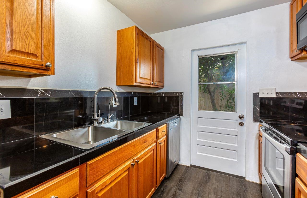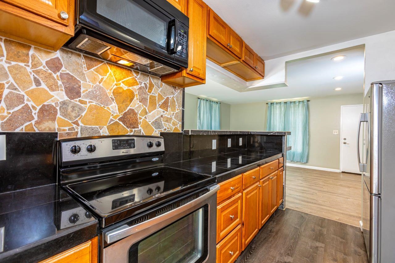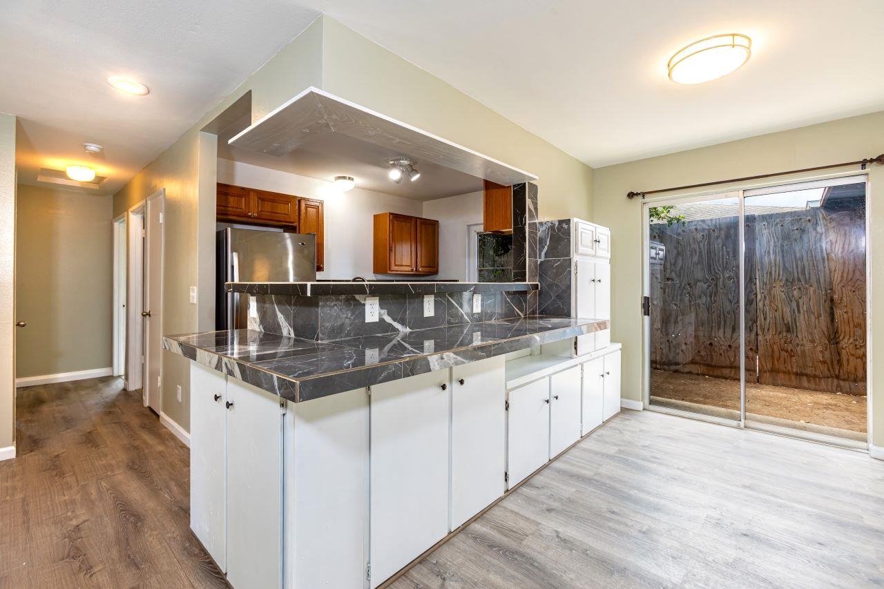 Great opportunity to live in an attached single-level home with No maintenance fees and No association fees! This charming home is ready for you to move in and features vinyl flooring, stainless steel appliances, freshly painted interior, an updated kitchen with midnight sparkle black granite tile counter, lots of cabinets and a wraparound counter for gatherings. Bathroom updated with ceramic tile flooring and raw edged leopard granite counter. Outside shower for beach days. This residence is conveniently located near community parks, schools, Costco, Walmart, Target, home improvement stores, restaurants, freeway access, airport. This property will be conveyed "As Is".