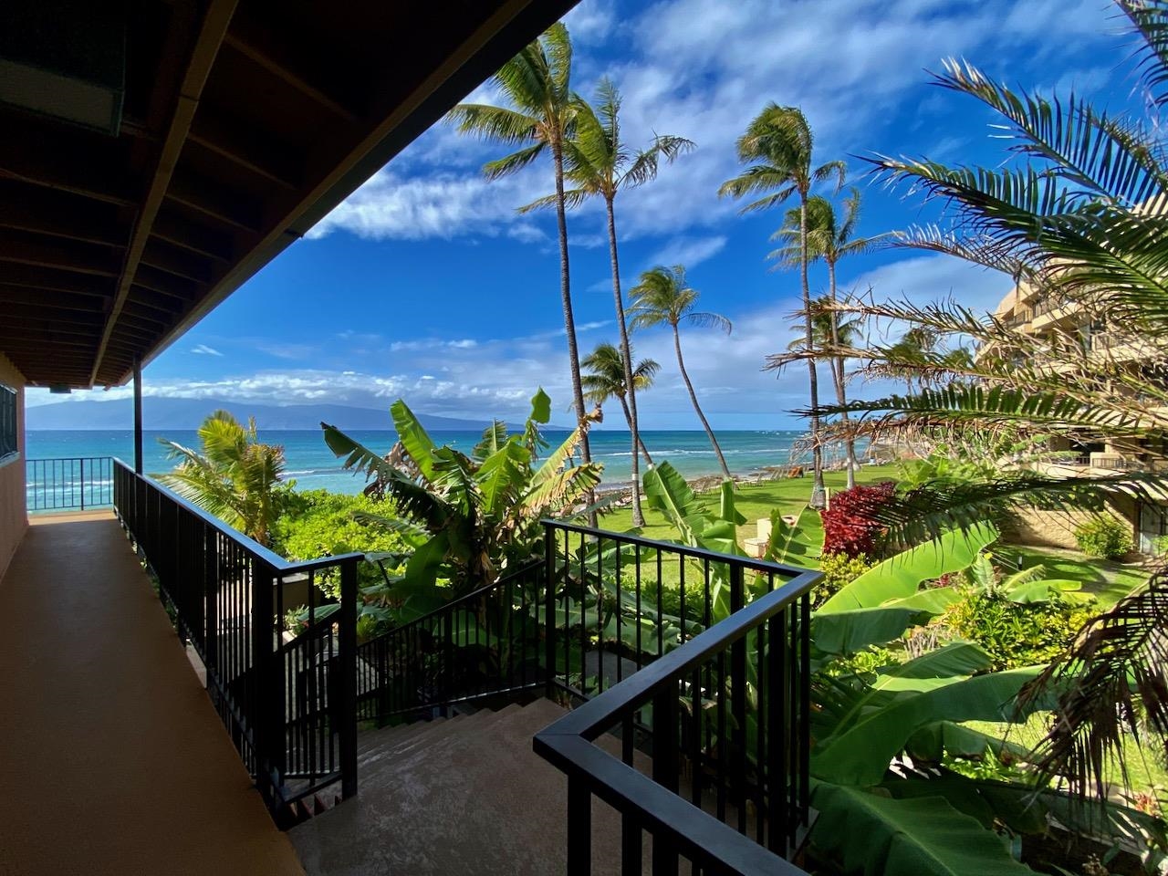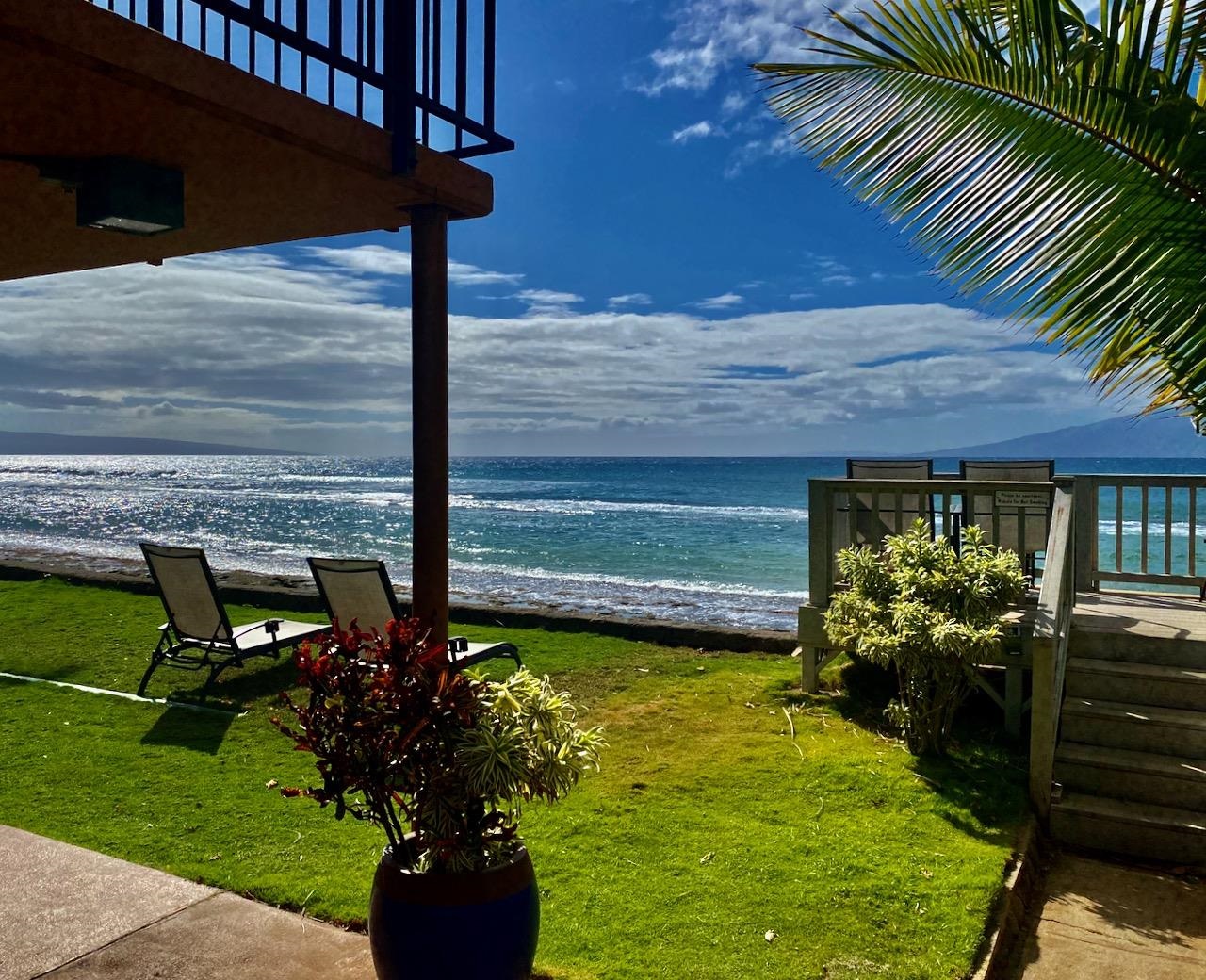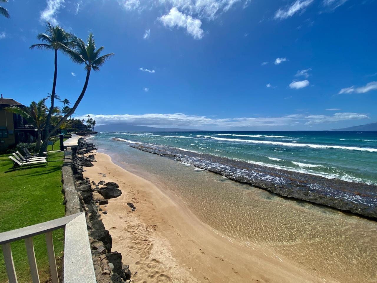 Oceanfront bargain! At the time of listing, this is by far the lowest priced vacation-rentable unit in West Maui, is a 1 bedroom & steps to the beach with great ocean views! Maui Sands Seaside is an intimate 20 unit low-rise waterfront condo that harks back to leisurely holidays-by-the-sea of Territorial days. Only four doors from the beachfront, you see the sea from both sides of the unit, yet with the perfect amount of mature tropical landscaping to provide privacy as well. 714 is comfortably furnished, fully turnkey & ready to welcome you and your vacation-rental guests. The roomy lanai of this 2nd floor unit offers terrific near ocean views. Far from the street, you can hear the ocean from anywhere in the unit for a perfect night sleep. A successful, highly-rated vacation-rental as well!