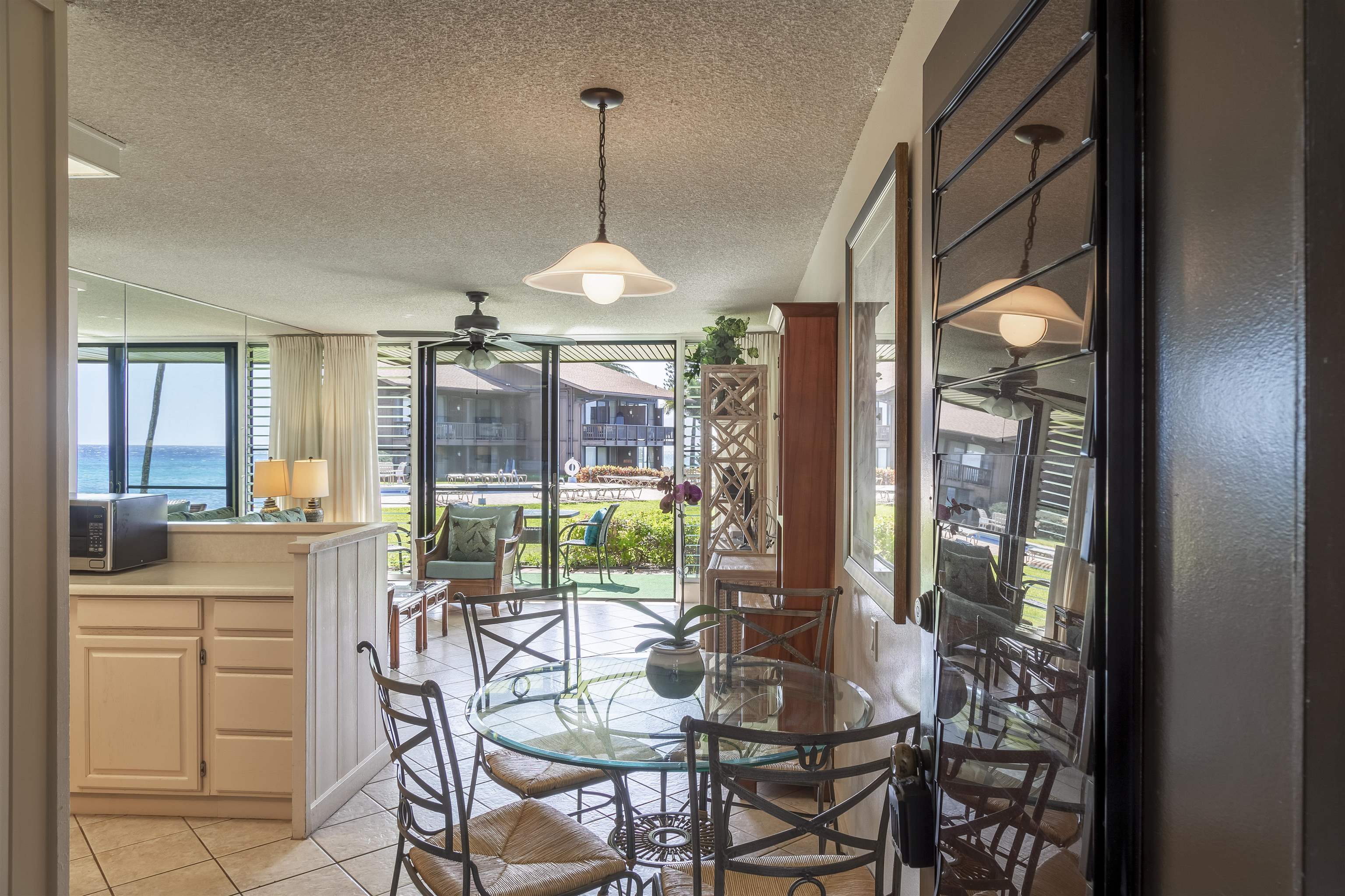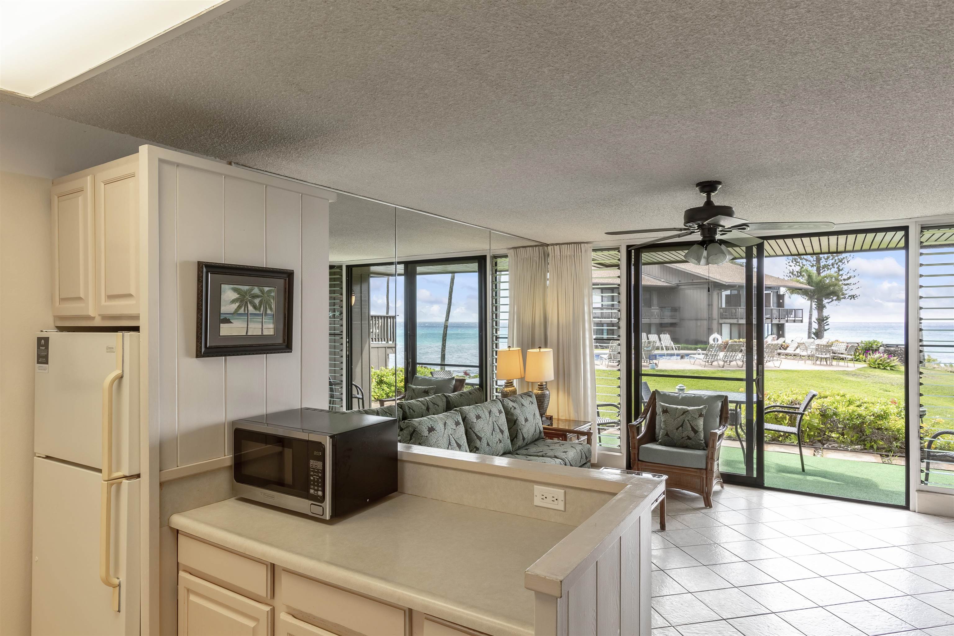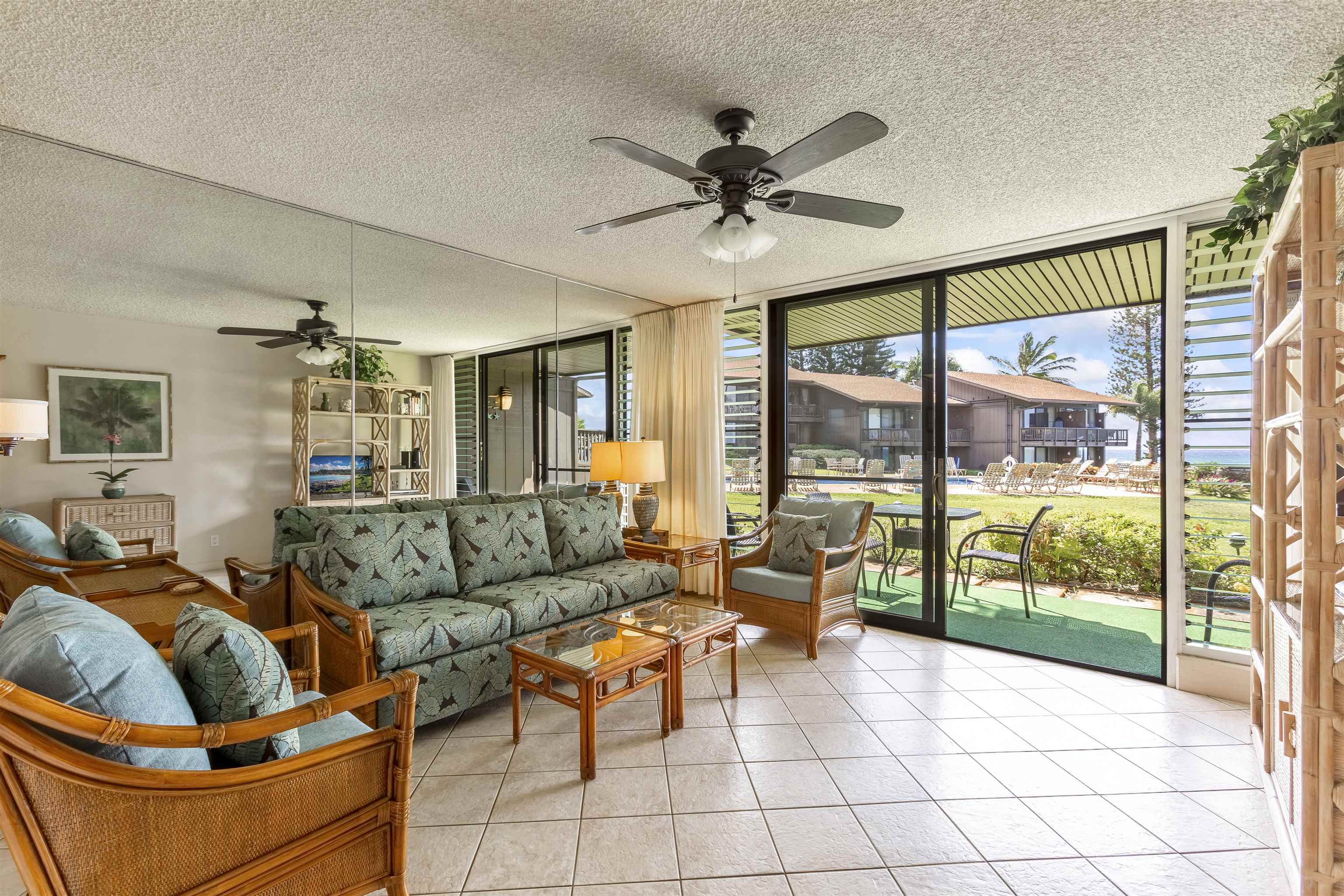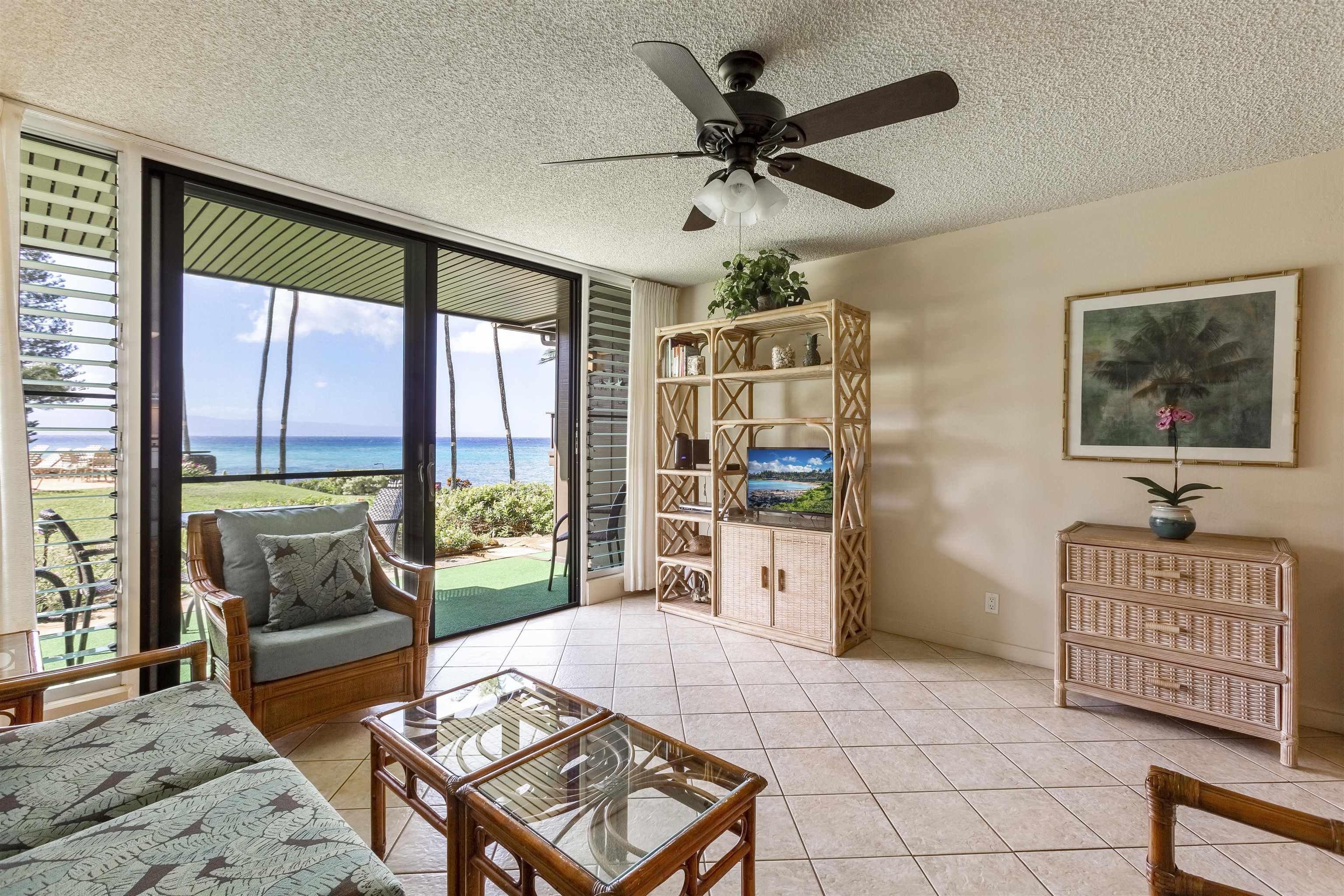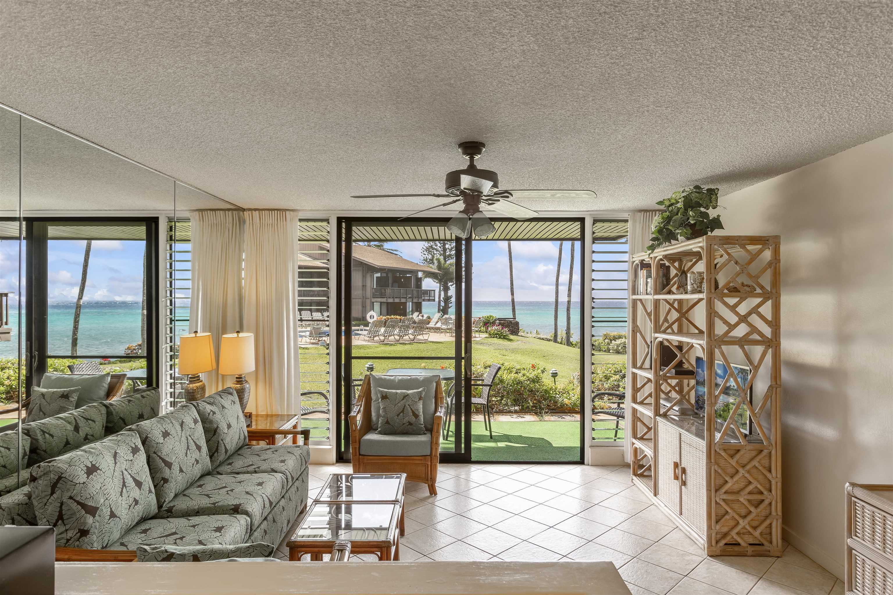 Sitting on just under 2 acres, Mahina Surf is a popular oceanfront condo complex in West Maui. #106 is a ground floor 1-bd/1-ba in close proximity to the pool and BBQ area. Enjoy views of the ocean, beautiful sunsets and well maintained lush tropical landscaping, Mahina Surf has an on-site community laundry facility, pool, and ocean side BBQs. Sold fully furnished and turnkey. Fee simple.