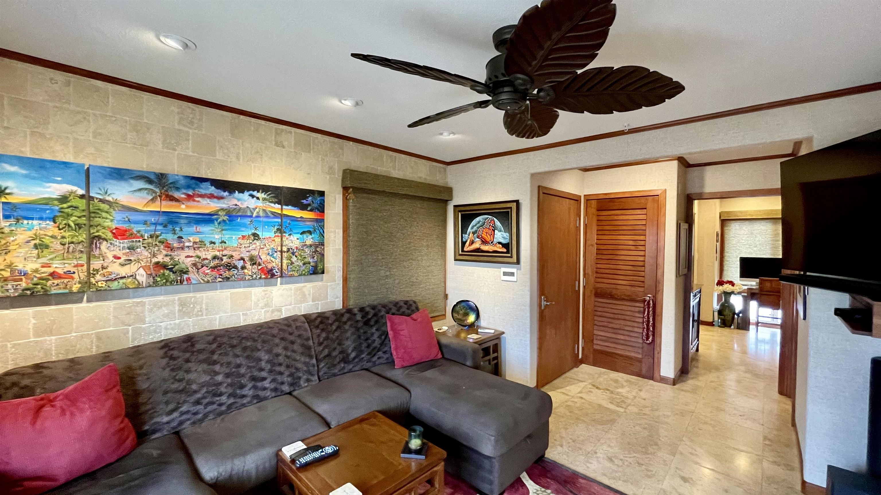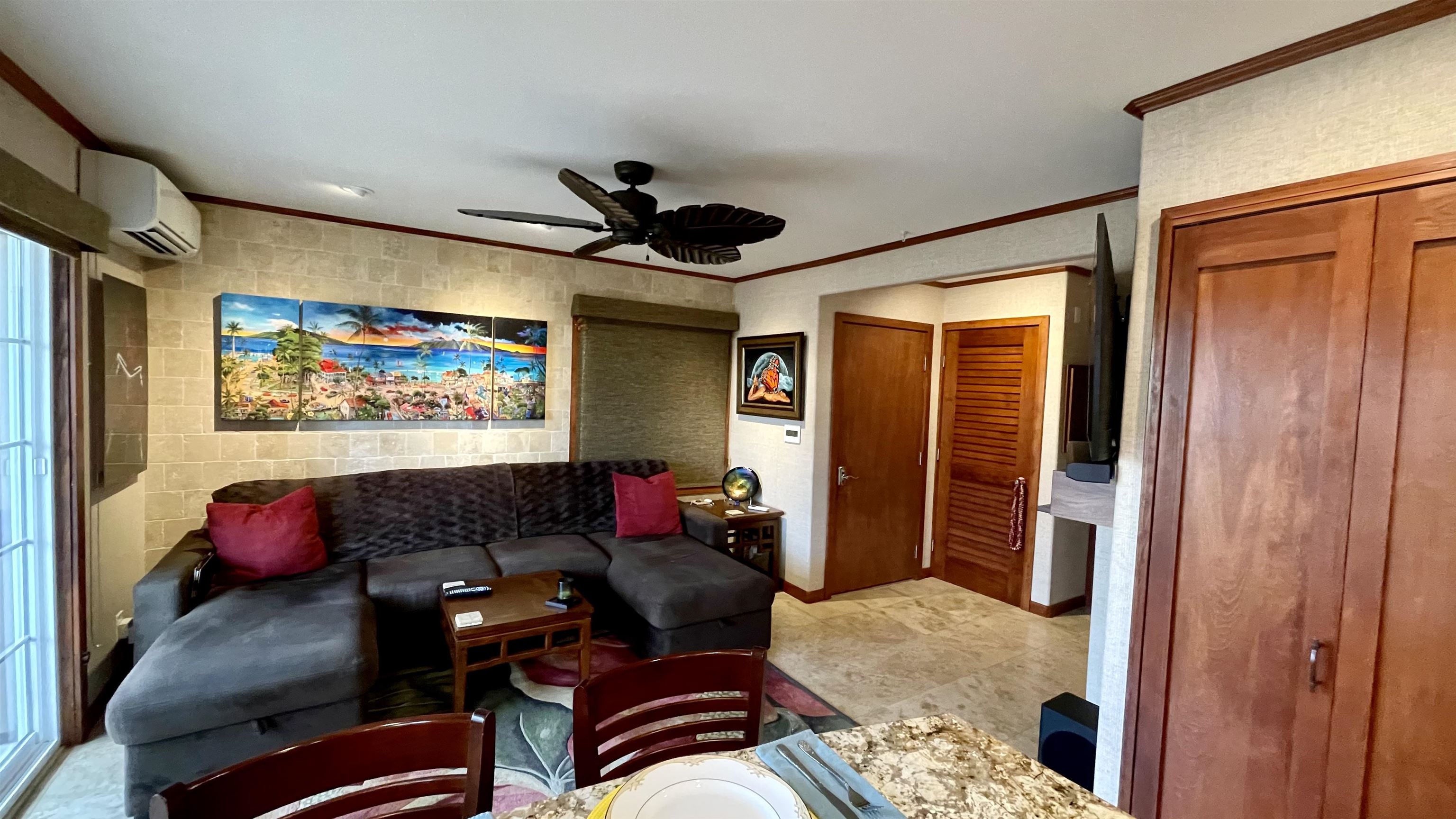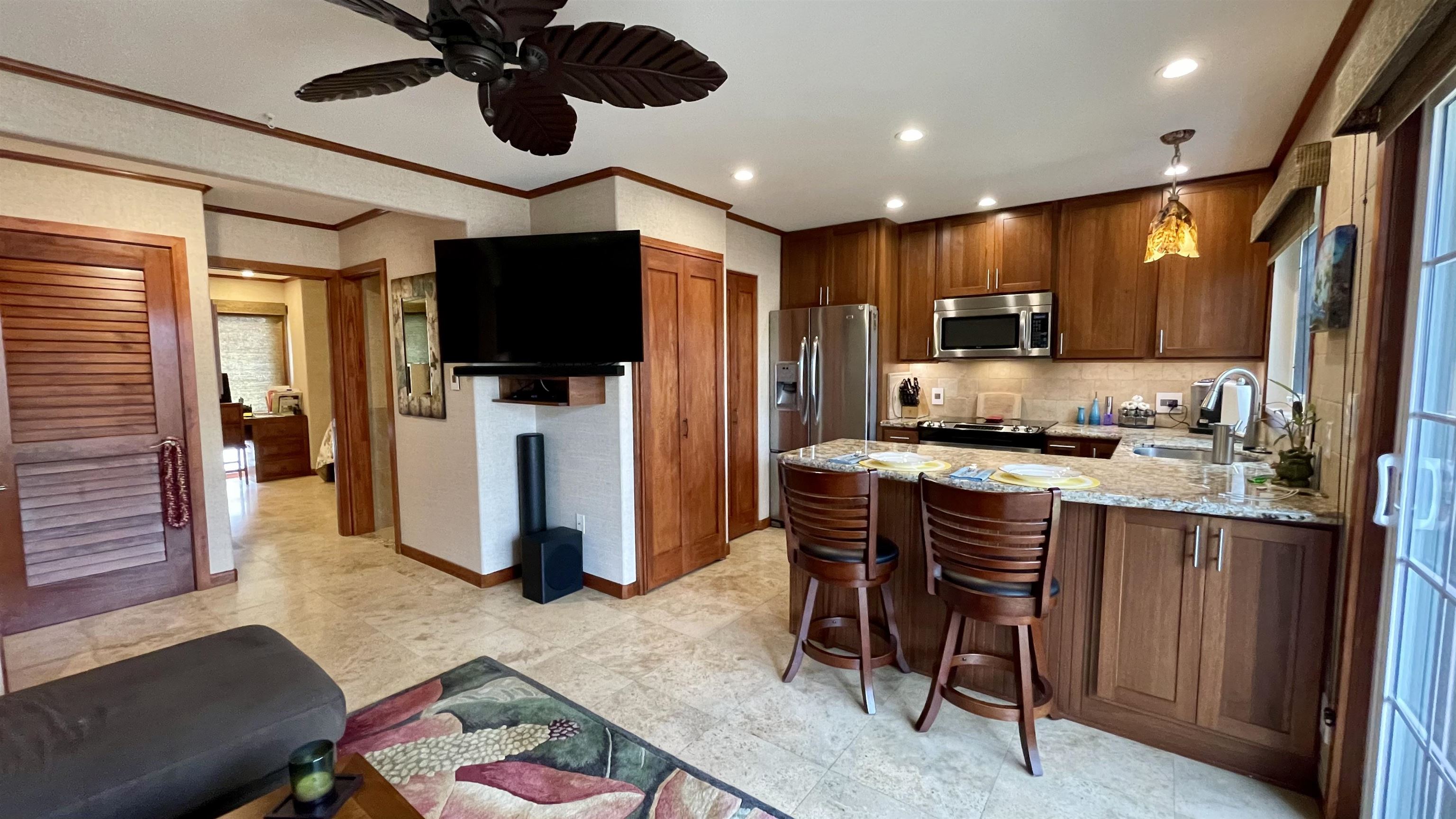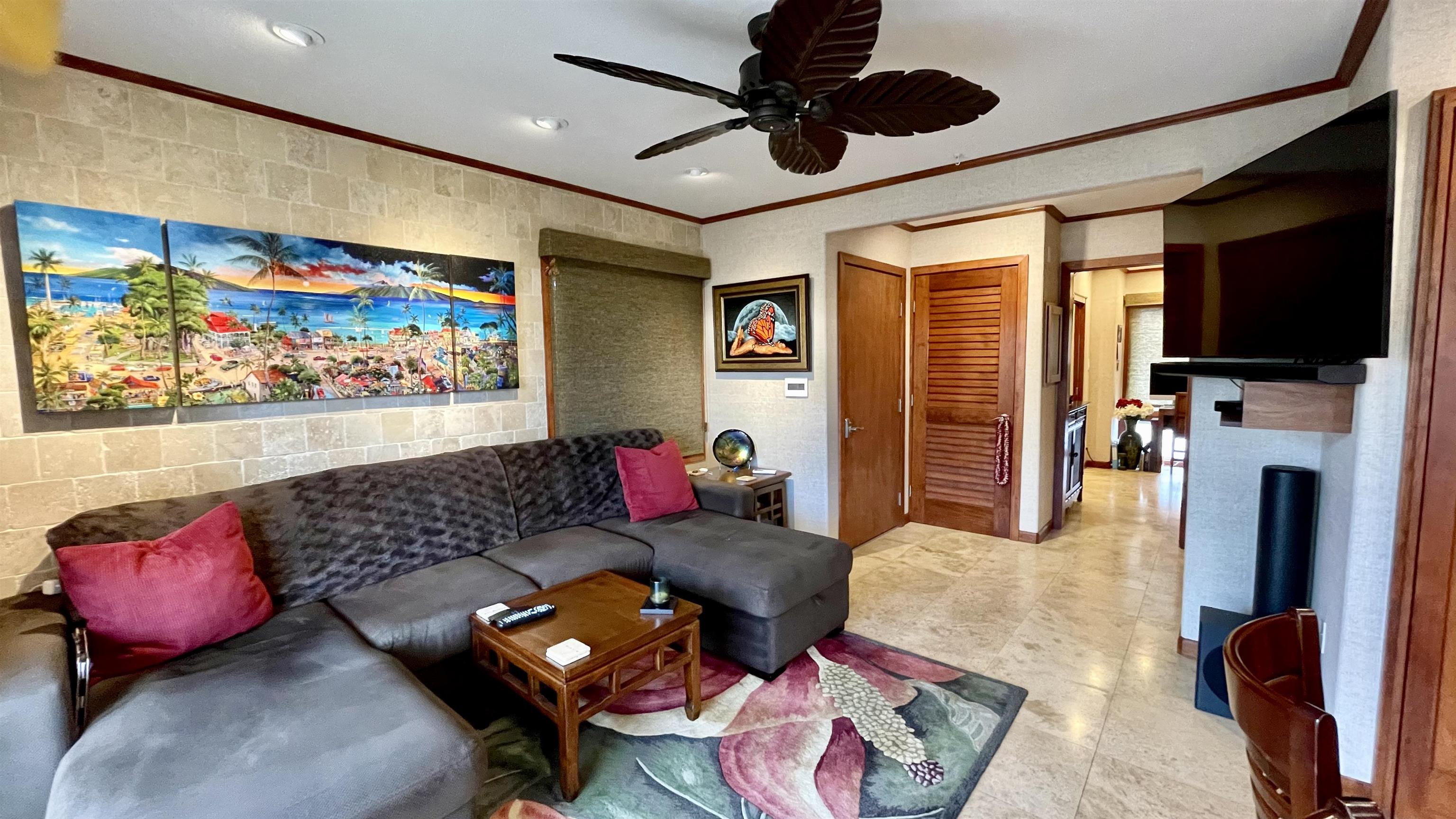 Stunning renovation in this condo located at Lahaina Residential, short distance to Baby Beach, shops, restaurants, bars and town. High end renovation includes granite counters, travertine floors, custom shower, Hawaiian style-stained crown molding and base to match, Plantation style louver doors, upgraded wallpaper, vessel glass sink in the bathroom, touch on kitchen faucet, high end appliances, 3-year-old Mitsubishi split AC, partial ocean view, desired end unit in front building, and a dedicated Tesla and electric car outlet next to parking stall. This is a one-of-a kind unit in this complex and is a must see. The remodel is top of the line. Comes mostly furnished with dishes, pots and pans and furniture (artwork on walls not included). Short Term Rentals NOT Allowed, but we are getting great market rent!