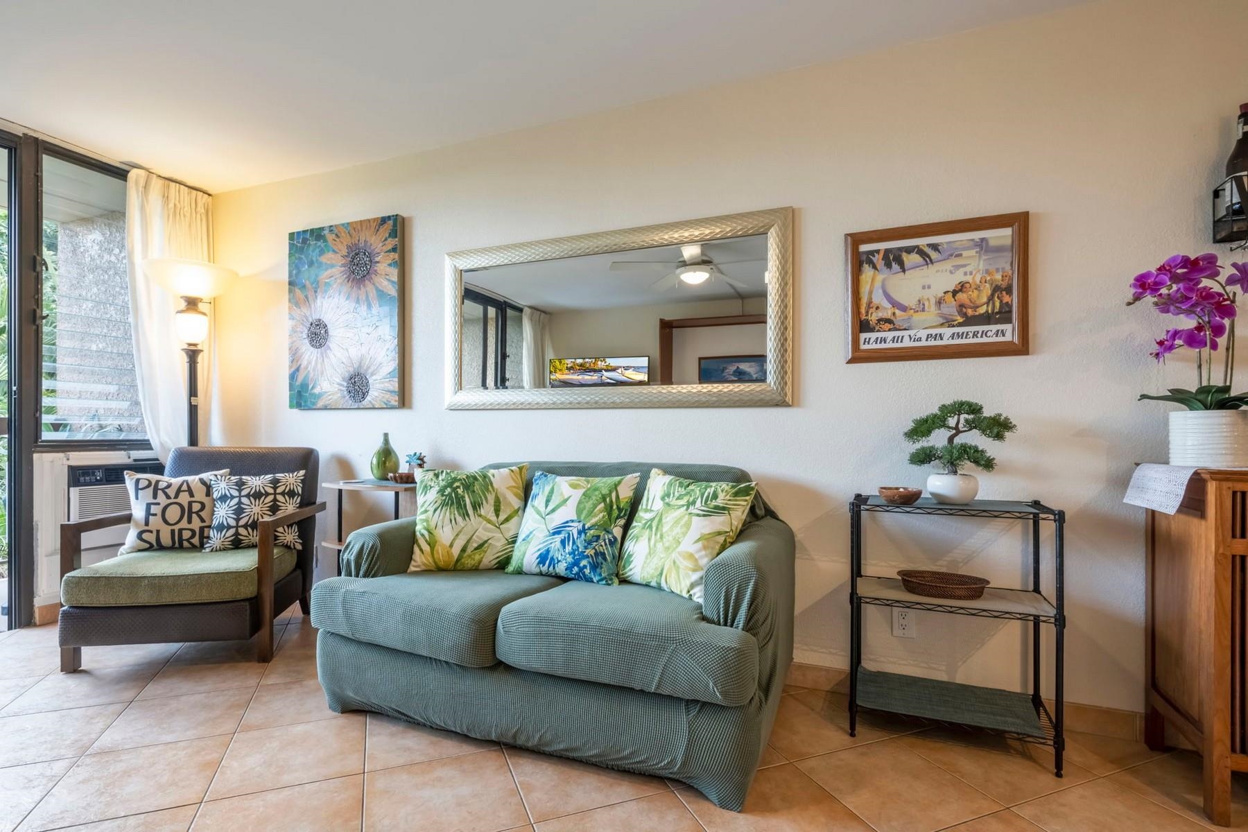 Delightful garden view condo on the third floor of the quietest building in the popular Maui Vista Resort. This successful vacation condo places you right where you want to be, steps from the beloved Charley Young beach and away from street noise. The property offers a versatile set-up of a queen size bed in the finely appointed bedroom suite and another queen in the hide-away living room wall unit. Pride of ownership shows throughout in the details. A new, powerful and quiet top-of-the-line AC will keep you cool. The tank water heater was also replaced in 2022. The tiled flooring throughout is stylish, practical and cool. Enjoy your coffee on the lanai while listening to the birds sing at sunrise or sip your favorite cocktail with the prettiest hues at sunset. South Mauis Kamaole beaches are just a stroll away across the street. Shopping and Restaurants also at walking distance, as well as Kiheis new favorite hang-out, South Maui Gardens, with its gourmet food trucks and amazing botanical collection. Whether you need a cozy place to call home here on the Valley Isle or as your next investment property, dont miss out on Maui Vista 3321. The complex offers 6 fabulous tennis courts and 3 pools and has been a vacation favorite of many for years. Showings by appointment only. Call your favorite Maui Realtor for a private viewing.