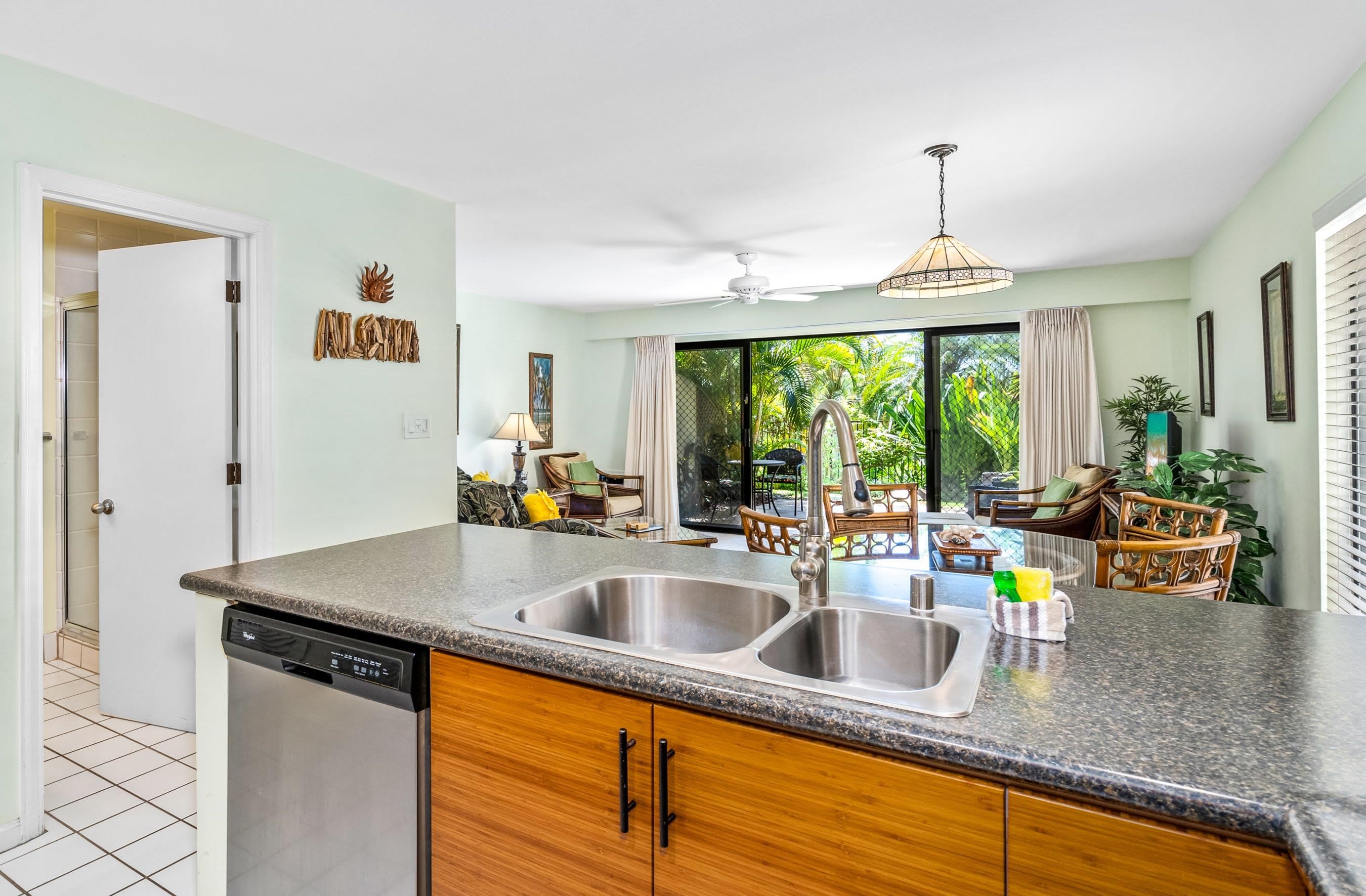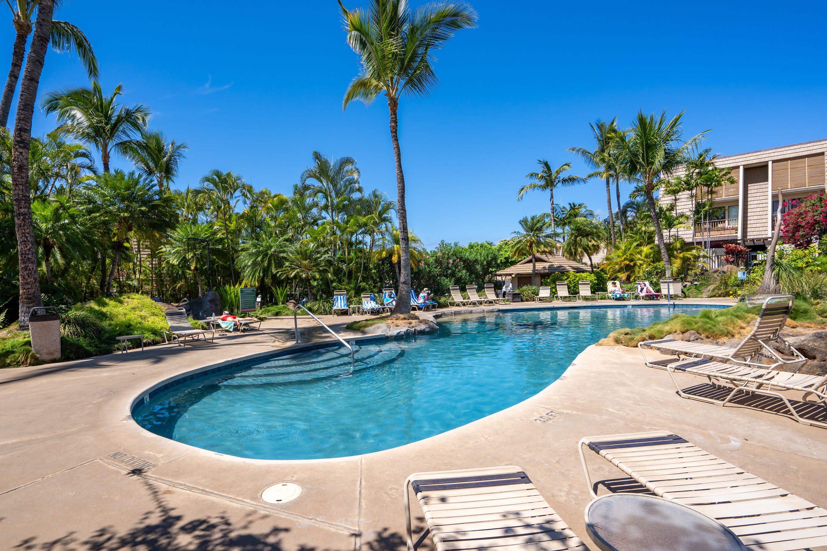 What a location!! Nestled just behind the tropical pool waterfall makes this location convenient to the pool, spa and tennis courts. This 1 bedroom, 2 bathroom condominium has a nice rear courtyard off of the bedroom and the bonus side window in the living room because it is an end unit. Maui Kamaole amenities include 2 pools, 2 hot tubs, 2 tennis courts and additional storage for owners Kayak's and Paddle Boards. Do not miss this one, call your favorite REALTOR and schedule a private showing today!