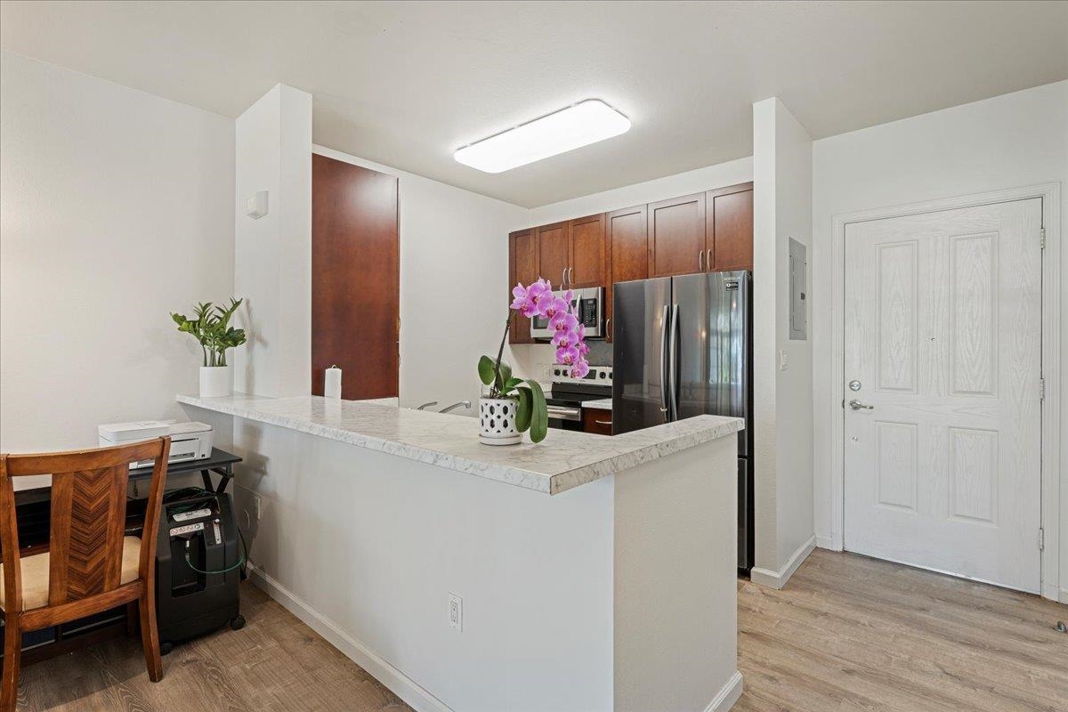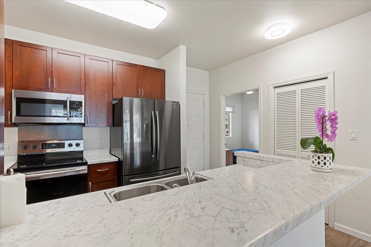 Welcome to this highly sought-after ground floor North Shore view townhouse in Hoolea Terrace at Kehalani! This unit features two bedrooms, one and a half bathrooms, and impressive 9-foot ceilings, providing a spacious feel. Enjoy North Shore views from your Lanai and master suite and Haleakala views from the second bedroom. Recently upgraded in 2024, this unit boasts new paint, kitchen countertop and dishwasher adding clean functionality. Convenience is key with 2 parking stalls – 69 & 70 conveniently located in front of the unit, along with 4 additional guest parking just steps away. This property offers easy access to various amenities including the Maui Memorial Medical Center, Starbucks, Foodland, Target, Walmart, Costco, Kahalani park and the airport. Whether you're looking for comfort, convenience, or accessibility, this townhouse has it all.