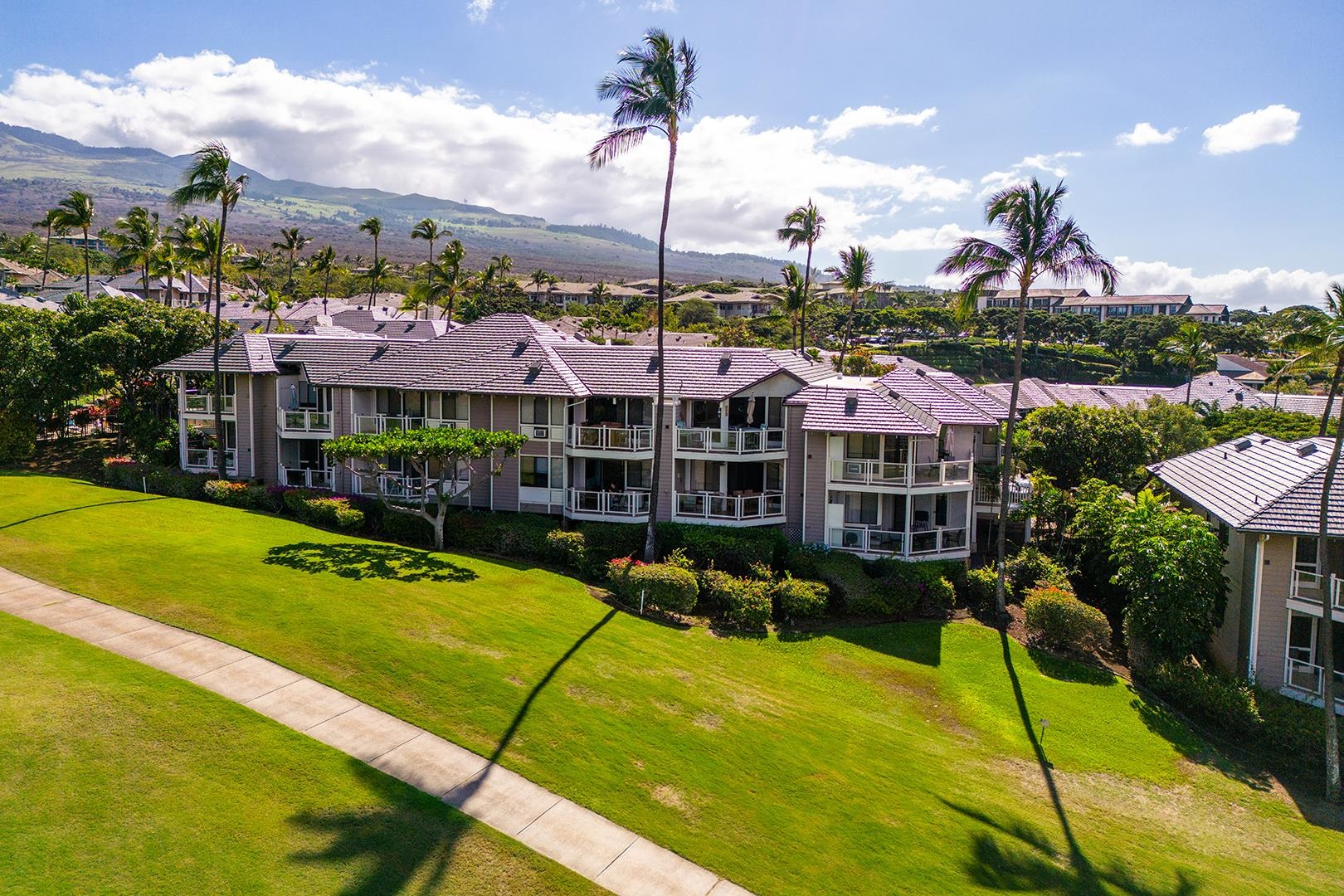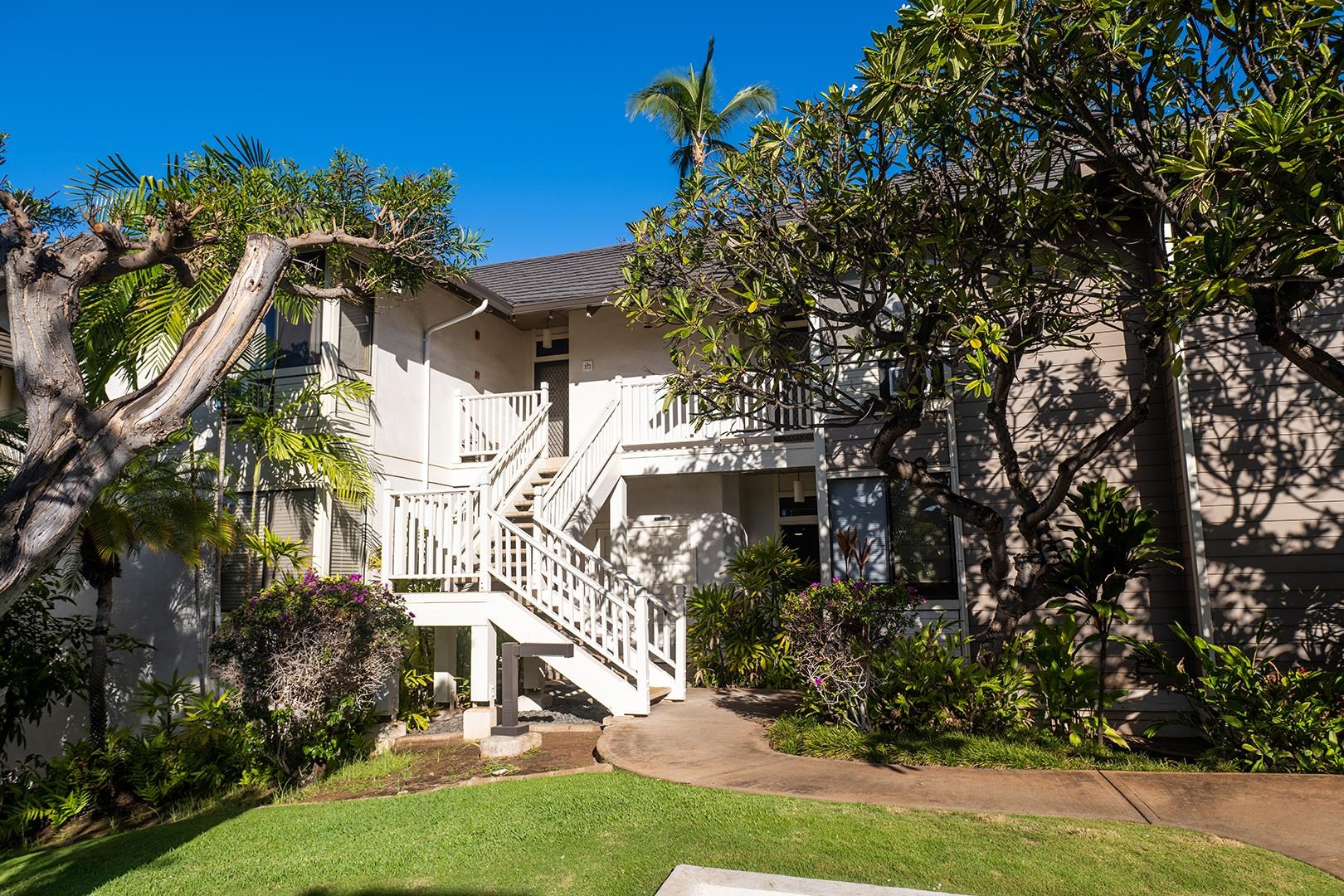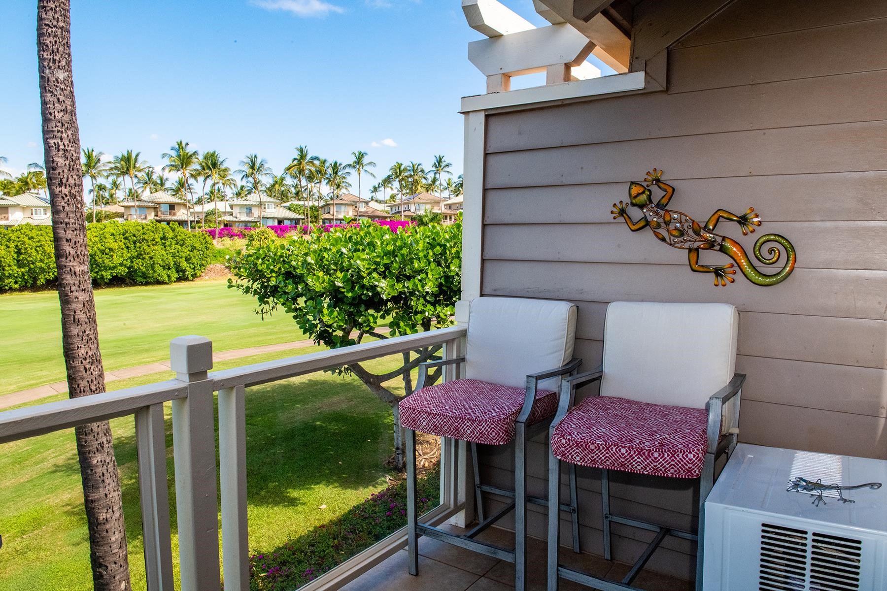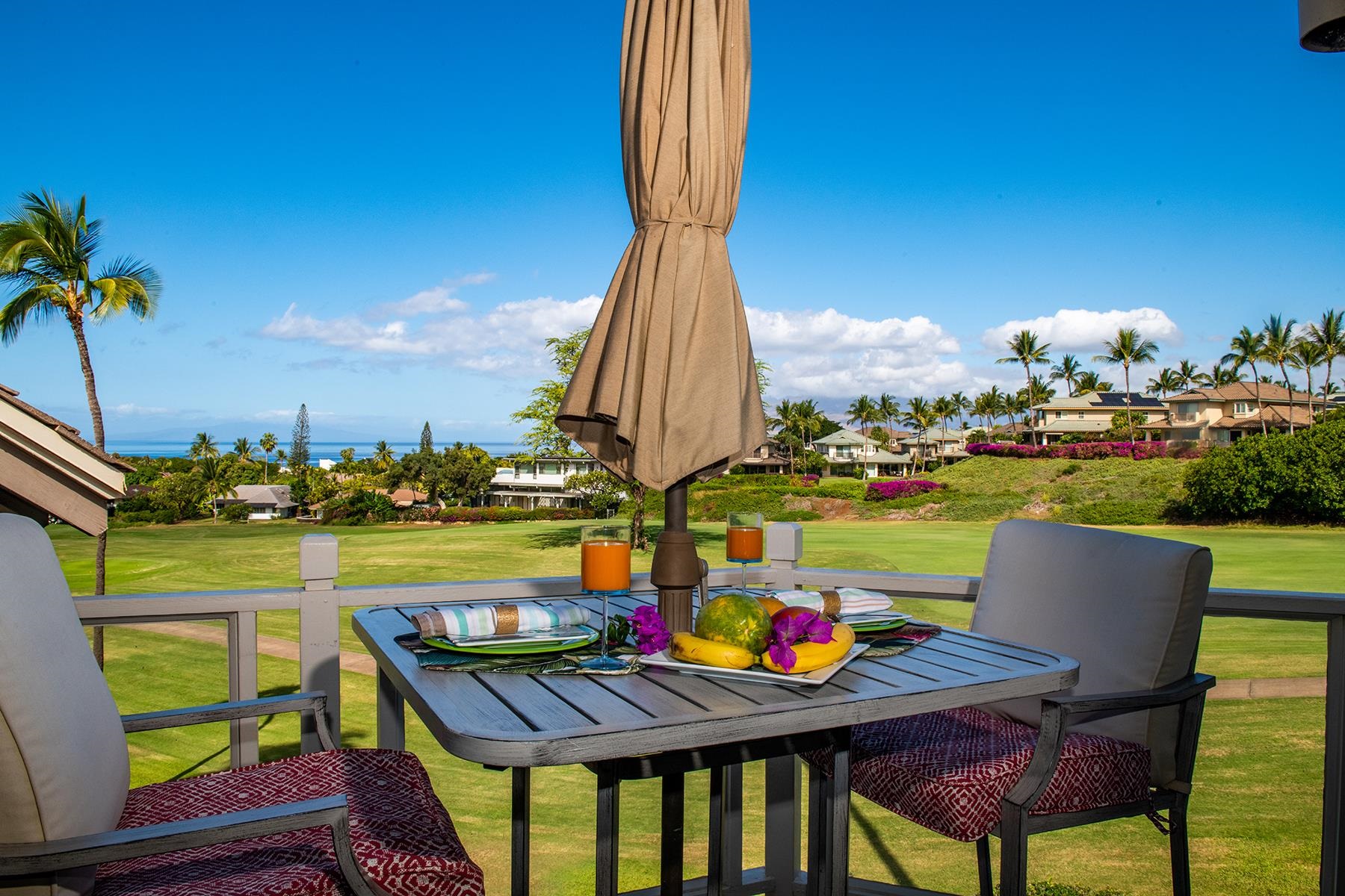 Grand Champions 172 offers a rare opportunity to acquire a top floor, vaulted ceiling, designer one bedroom condo with sweeping golf course and ocean views. Step in to this thoughtfully designed condo and feel immediately at home.Wrapped by, and overlooking the Wailea Blue course, this villa provides prime ocean with golf course views, in the heart of Wailea. A beautiful one bedroom two bath 908 sq. ft. unit includes a high-quality remodel, complete with vaulted ceilings and an abundance of natural light. Upgrades include granite countertops, newer stainless steel appliances, soft close cabinetry, custom designed glass, and a designed Murphy bed (with a full sized Queen mattress) to let your one bedroom live like a two bedroom. Just a short stroll away are prime dining, and shopping options, not to mention some of Maui's most beautiful beaches. Grand Champions has two pool areas to maximize a peaceful atmosphere as well as bbq areas. Make this comfortable condo your primary residence in Wailea and experience the joy of island life. It's more than just a home, it's a personal sanctuary in paradise. Call your favorite Realtor to secure this great Wailea property.