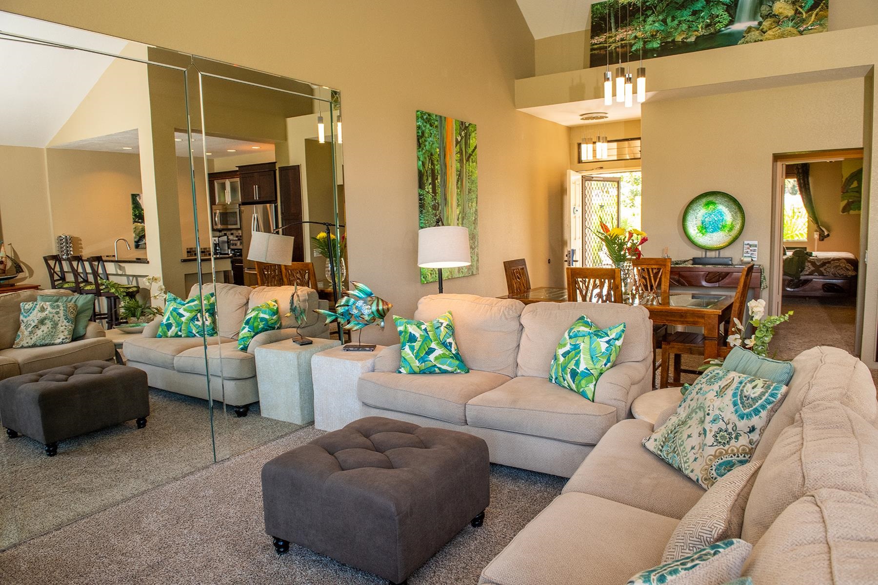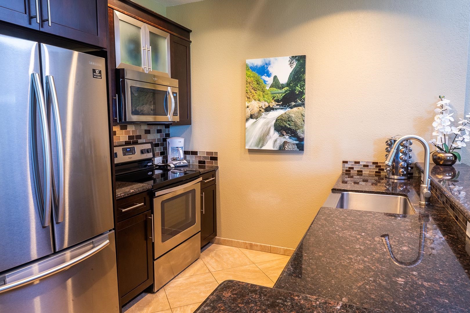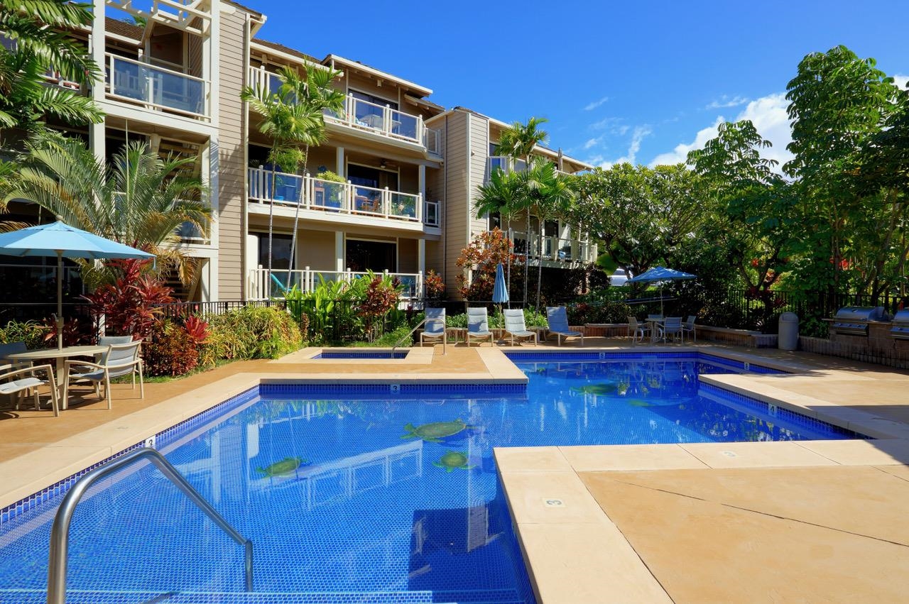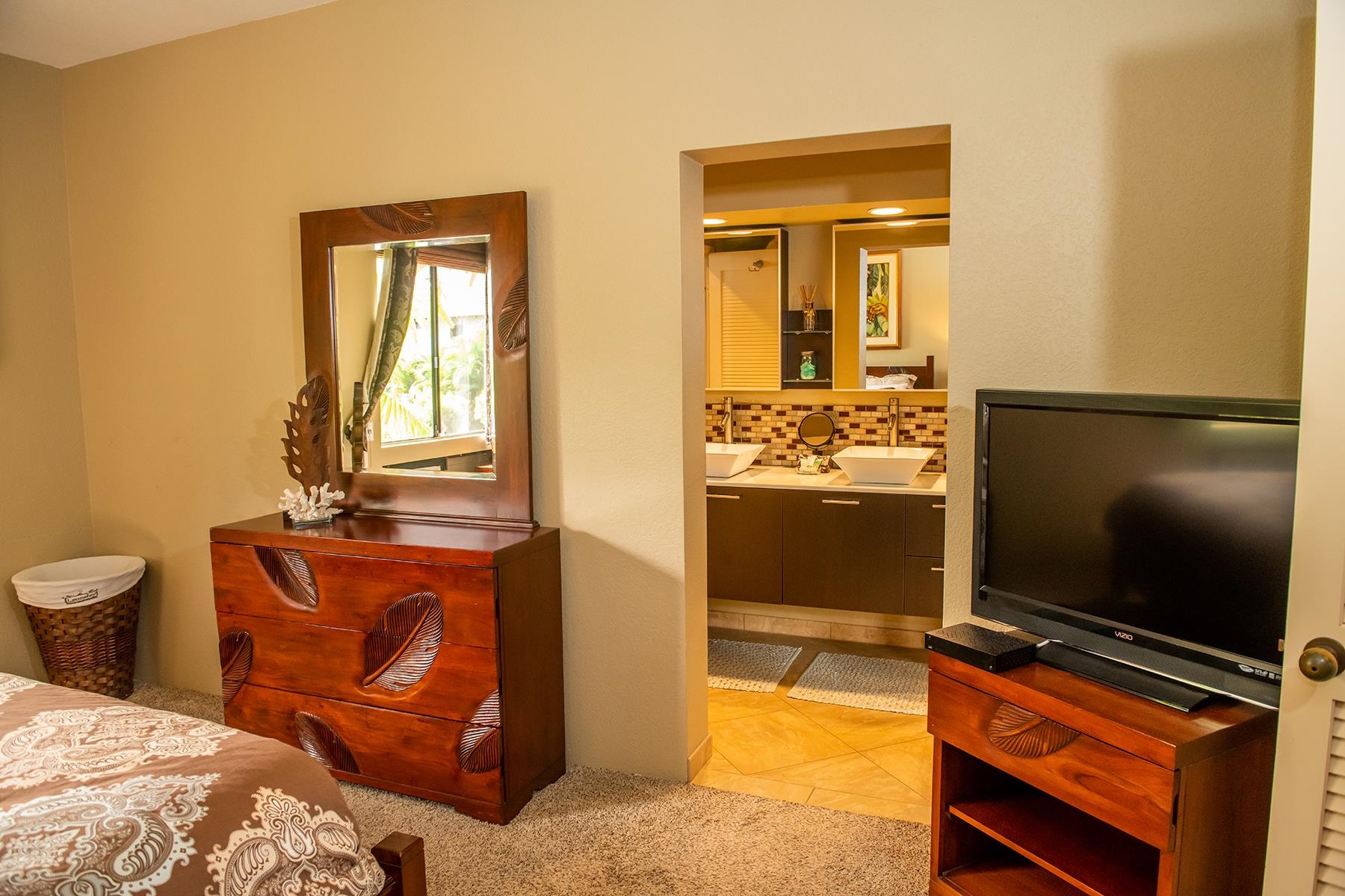 Grand Champions 172 offers a rare opportunity to acquire a top floor, vaulted ceiling, designer one bedroom condo with sweeping golf course and ocean views. Step in to this thoughtfully designed condo and feel immediately at home.Wrapped by, and overlooking the Wailea Blue course, this villa provides prime ocean with golf course views, in the heart of Wailea. A beautiful one bedroom two bath 908 sq. ft. unit includes a high-quality remodel, complete with vaulted ceilings and an abundance of natural light. Upgrades include granite countertops, newer stainless steel appliances, soft close cabinetry, custom designed glass, and a designed Murphy bed (with a full sized Queen mattress) to let your one bedroom live like a two bedroom. Just a short stroll away are prime dining, and shopping options, not to mention some of Maui's most beautiful beaches. Grand Champions has two pool areas to maximize a peaceful atmosphere as well as bbq areas. Make this comfortable condo your primary residence in Wailea and experience the joy of island life. It's more than just a home, it's a personal sanctuary in paradise. Call your favorite Realtor to secure this great Wailea property.