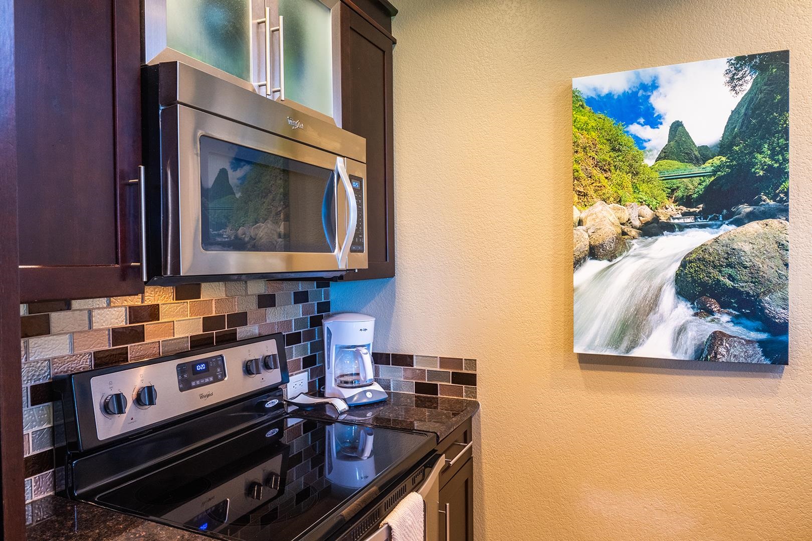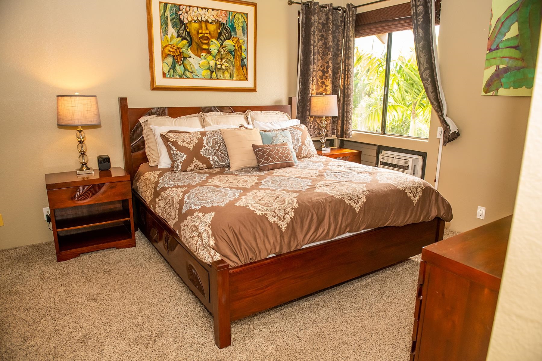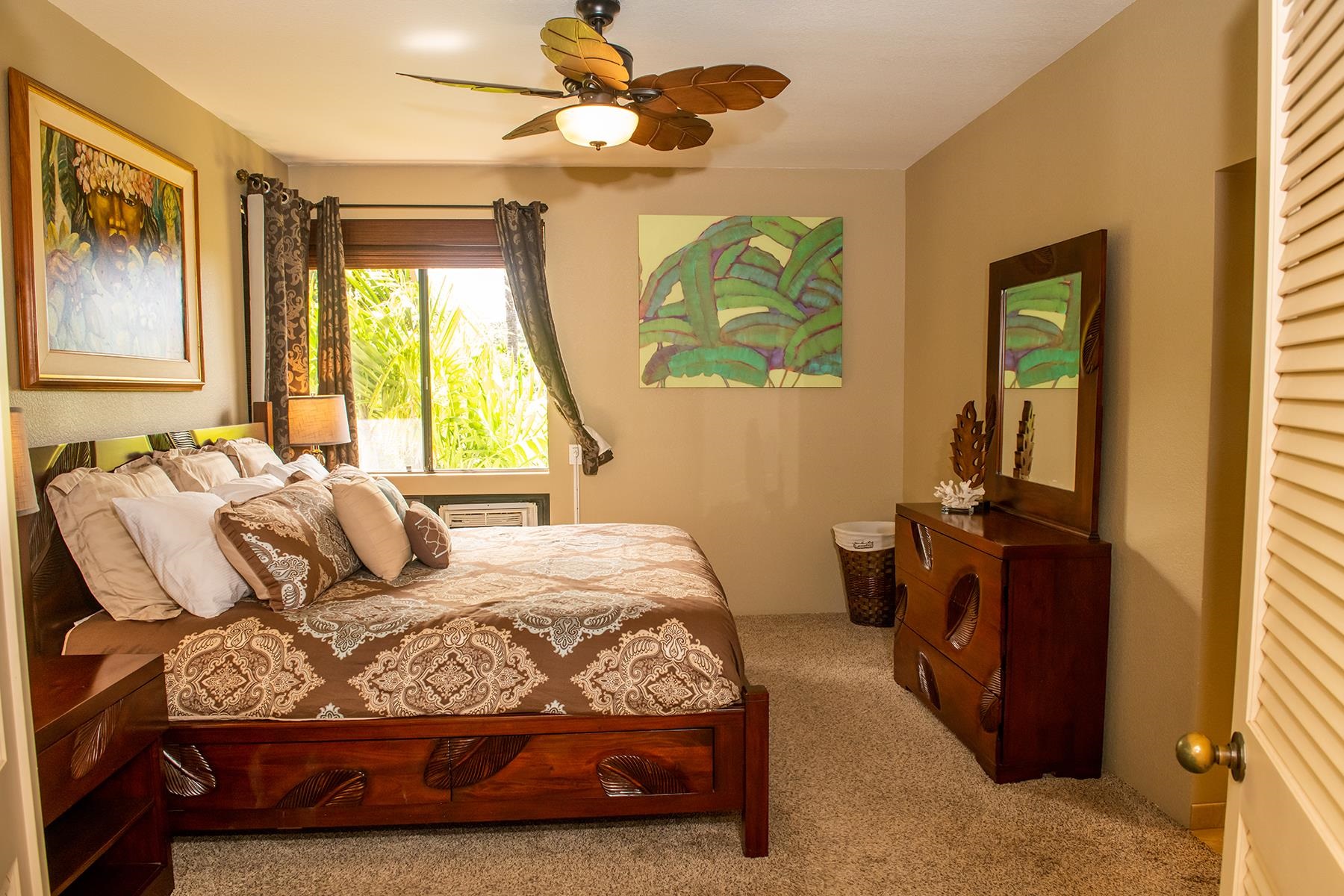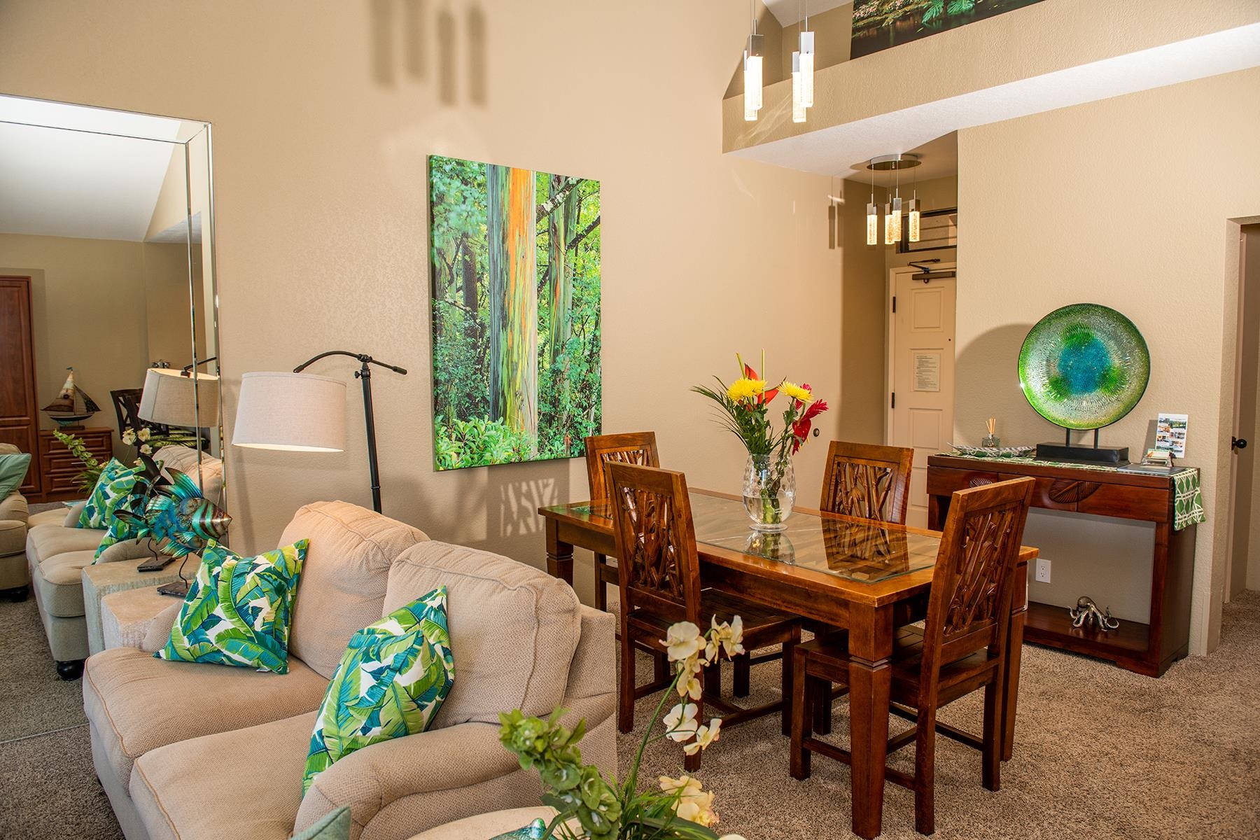 Grand Champions 172 offers a rare opportunity to acquire a top floor, vaulted ceiling, designer one bedroom condo with sweeping golf course and ocean views. Step in to this thoughtfully designed condo and feel immediately at home.Wrapped by, and overlooking the Wailea Blue course, this villa provides prime ocean with golf course views, in the heart of Wailea. A beautiful one bedroom two bath 908 sq. ft. unit includes a high-quality remodel, complete with vaulted ceilings and an abundance of natural light. Upgrades include granite countertops, newer stainless steel appliances, soft close cabinetry, custom designed glass, and a designed Murphy bed (with a full sized Queen mattress) to let your one bedroom live like a two bedroom. Just a short stroll away are prime dining, and shopping options, not to mention some of Maui's most beautiful beaches. Grand Champions has two pool areas to maximize a peaceful atmosphere as well as bbq areas. Make this comfortable condo your primary residence in Wailea and experience the joy of island life. It's more than just a home, it's a personal sanctuary in paradise. Call your favorite Realtor to secure this great Wailea property.